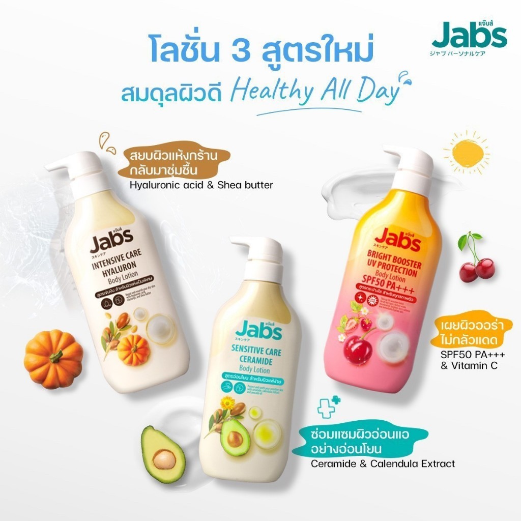 Jabs UV Body Lotion Shower Cream แจ๊บส์ บอดี้ โลชั่น ครีม บำรุงผิว ครีมกันแดด ผิวแพ้ง่าย ครีมอาบน้ำ สบู่อาบน้ำ