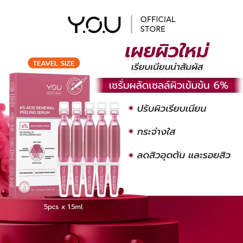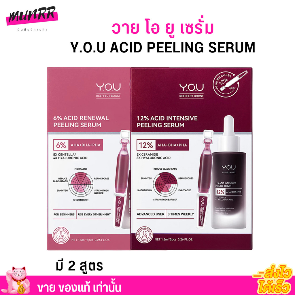 [มี 2 สูตร] Y.O.U 6% / 12% Acid Peeling Serum วายโอยู เซรั่ม ผลัดเซลล์ผิวเข้มข้น กระชับรูขุมขน ลดสิว ผิวใส เซรั่มแดง