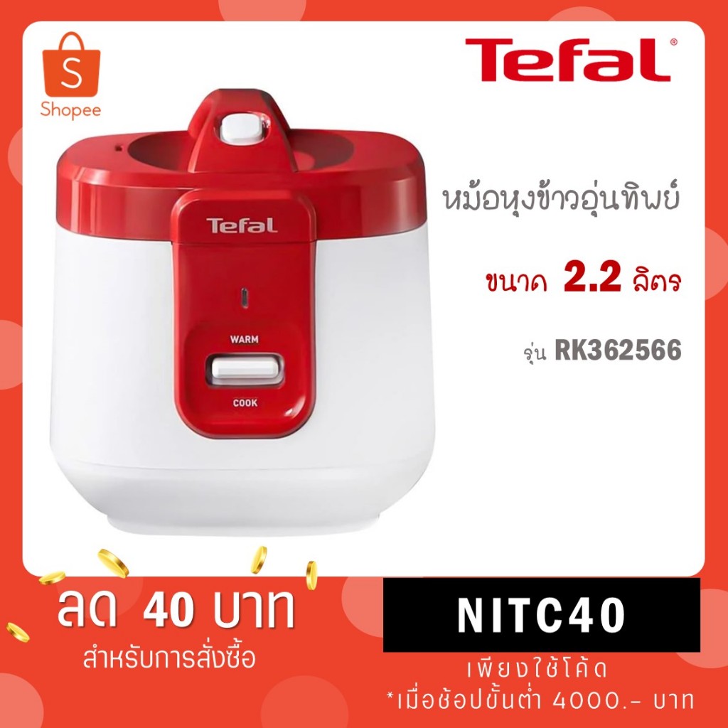 Tefal หม้อหุงข้าว หม้อหุงข้าวอุ่นทิพย์ ขนาด 2.2 ลิตร รุ่น RK362566 RK3625