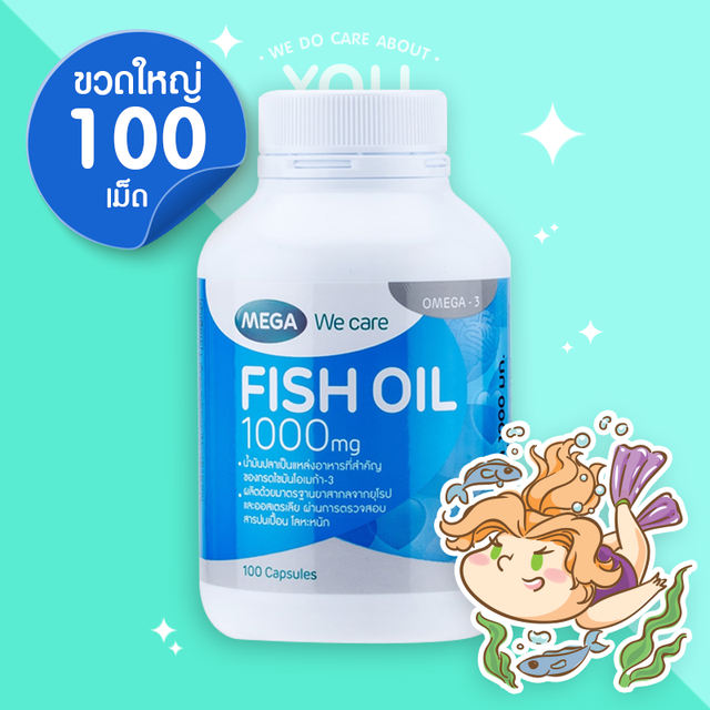 Mega We Care Fish Oil 1000 มก. น้ำมันปลา 100 แคปซูล Omega