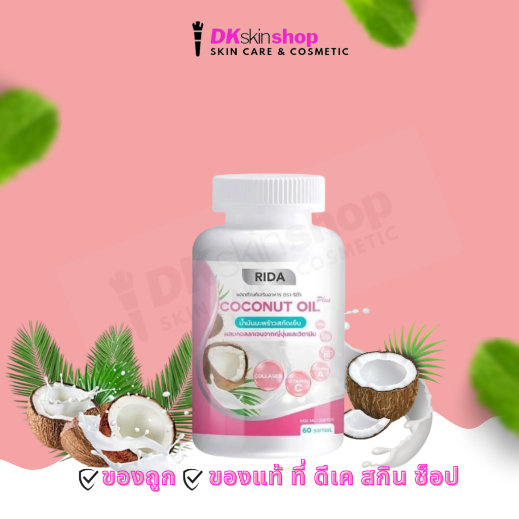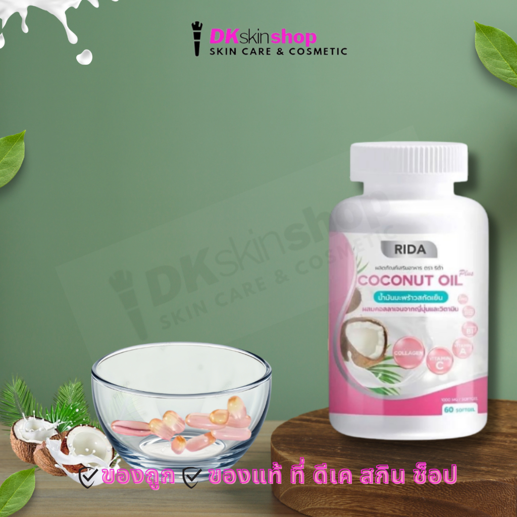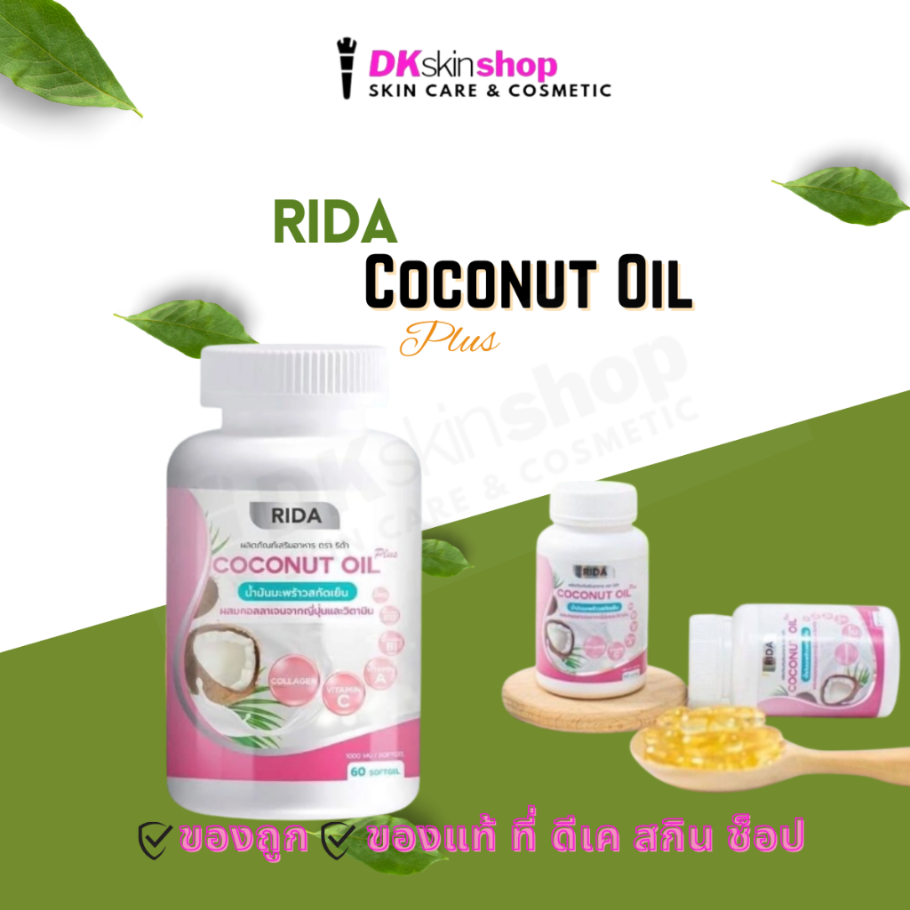 ริด้า โคโคนัท ออยล์ พลัส ผลิตภัณฑ์เสริมอาหาร Rida Coconut Oil Plus Dietary Supplement Product (1 กระปุก 60 ซอฟเจล)