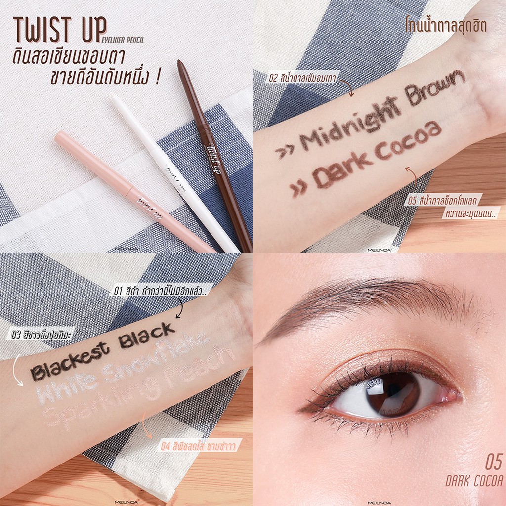 ถูก/แท้/มีไลฟ์ อายไลน์เนอร์ MEILINDA Twist Up Eyeliner Pencil ดินสอ เขียนขอบตา เขียนตา กรีดตา อายไลน์เนอร์ กันน้ำ ตาคม