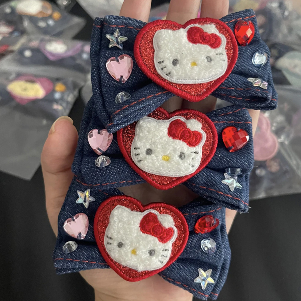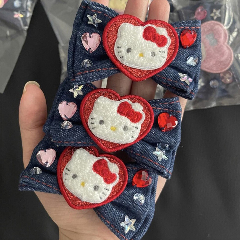 Hello Kitty คาวบอยโบว์กิ๊บการ์ตูน Y2K Shatters กิ๊บติดผมผมหางม้าสูง