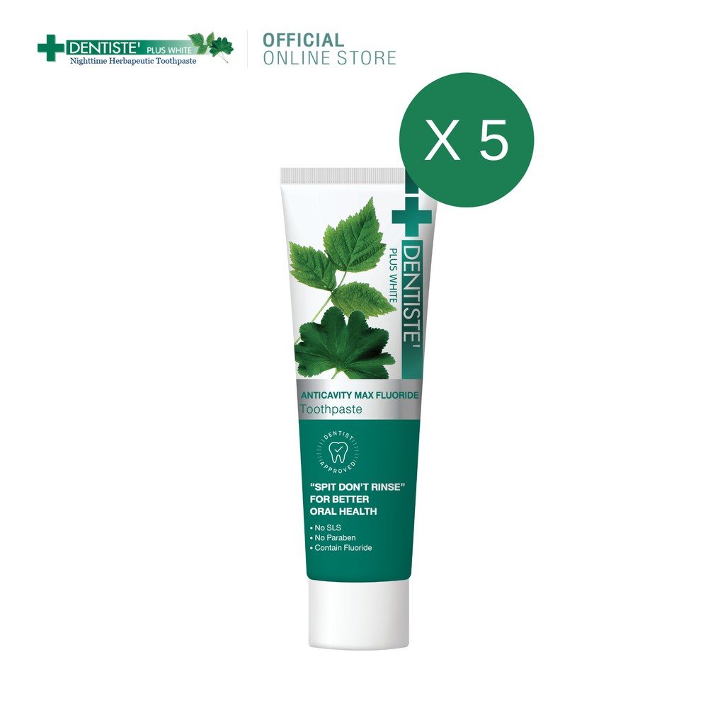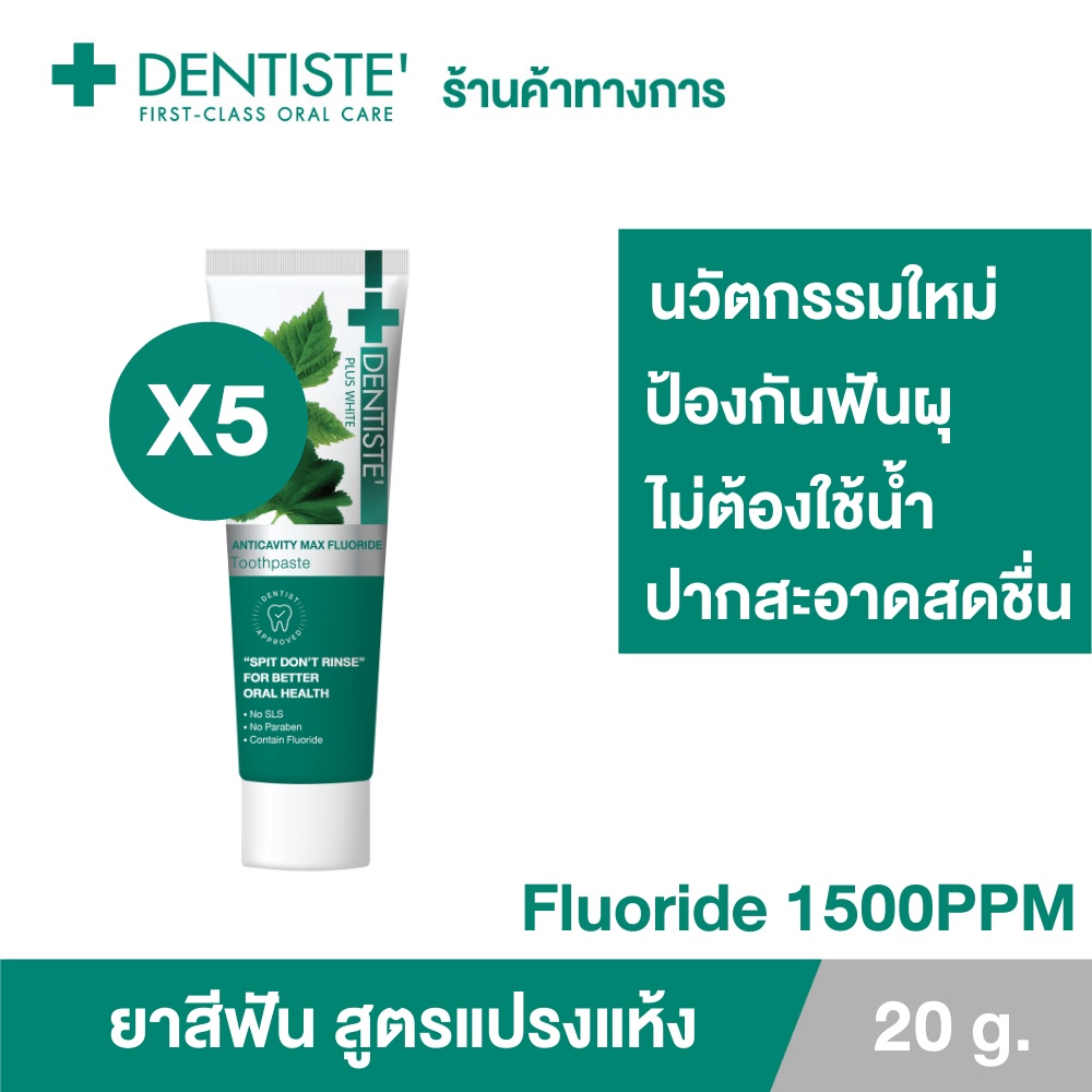 [แพ็คสุดคุ้ม5ชิ้น] Dentiste’ Anticavity Max เดนทิสเต้ ยาสีฟันแปรงแห้ง สูตร Anticavity Max ขนาด 20 กรัม