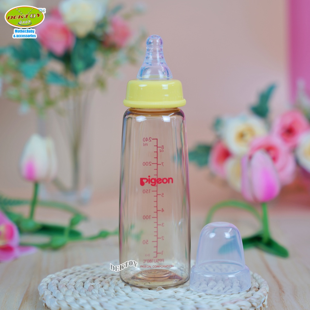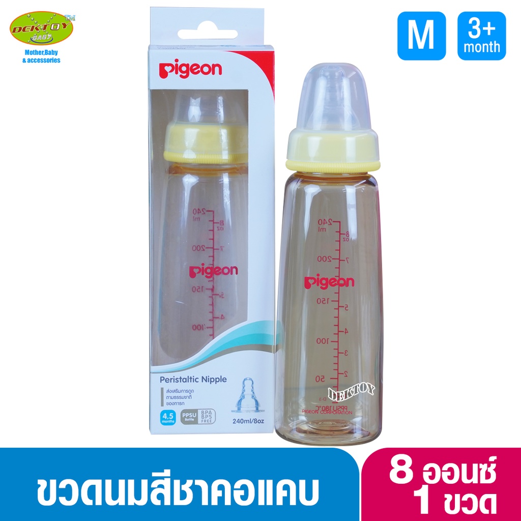 PIGEON พีเจ้น ขวดนมพีเจ้นสีชา PPSU 8 ออนซ์ 240 มล ทรงมาตรฐาน พร้อมจุกนมเสมือนนมมารดา รุ่น มินิ size M