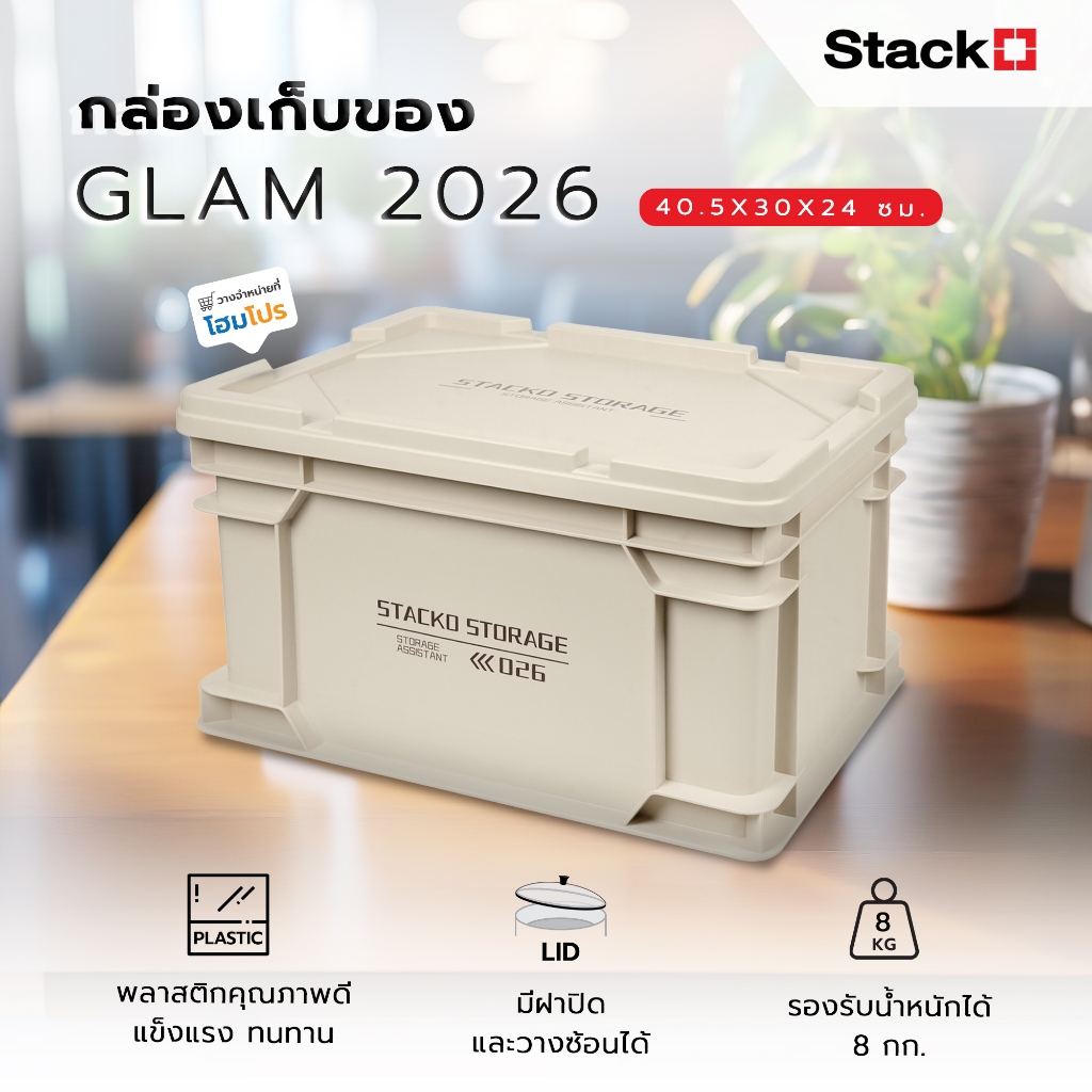 STACKO กล่องเก็บของ GLAM 2026 40.5X30X24 ซม. สีเบจ จัดส่งโดย HomePro