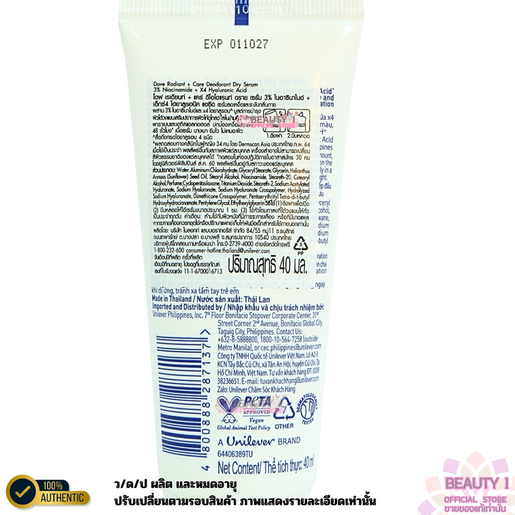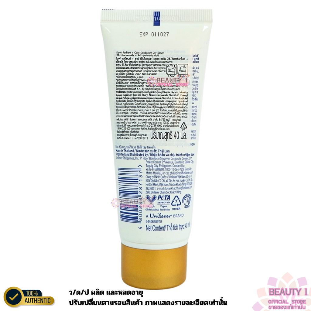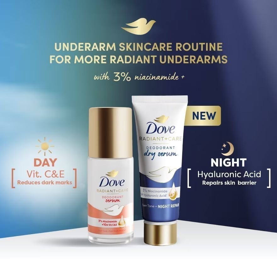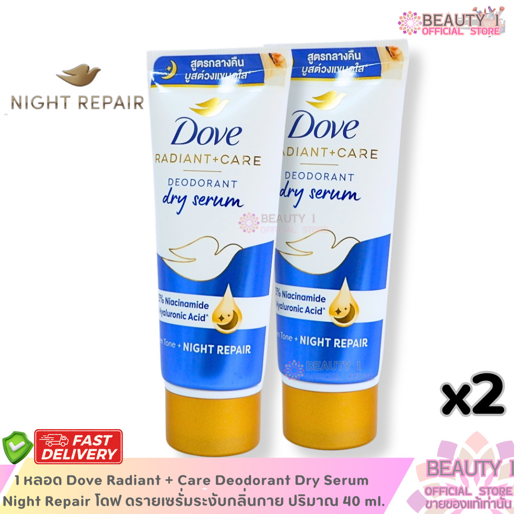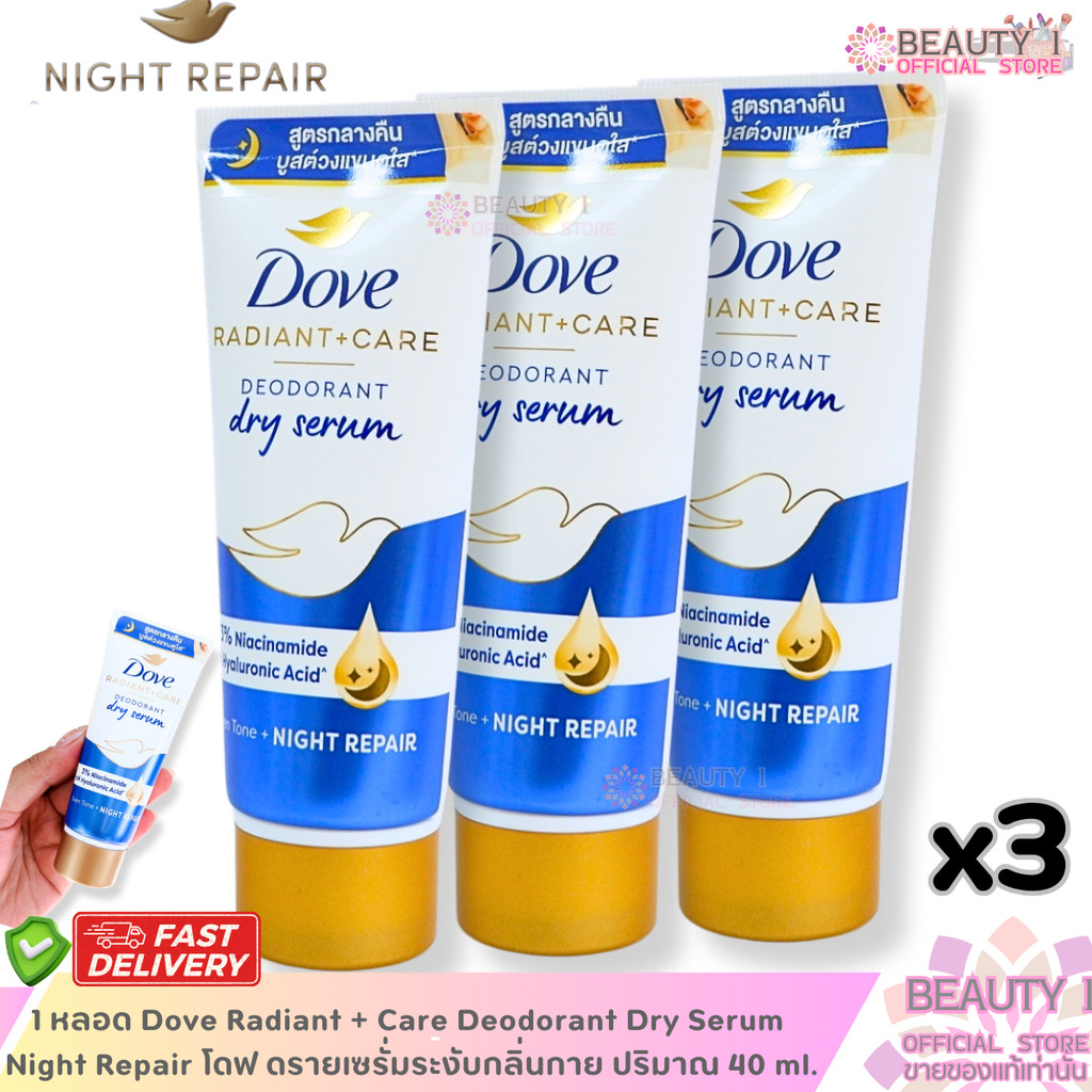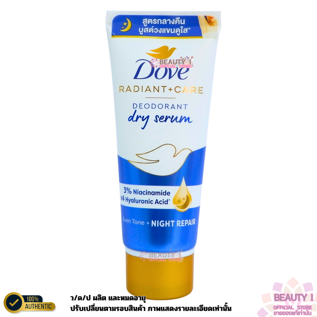 1 หลอด Dove Radiant + Care Deodorant Dry Serum Night Repair โดฟ ดรายเซรั่มระงับกลิ่นกาย ปริมาณ 40 ml.