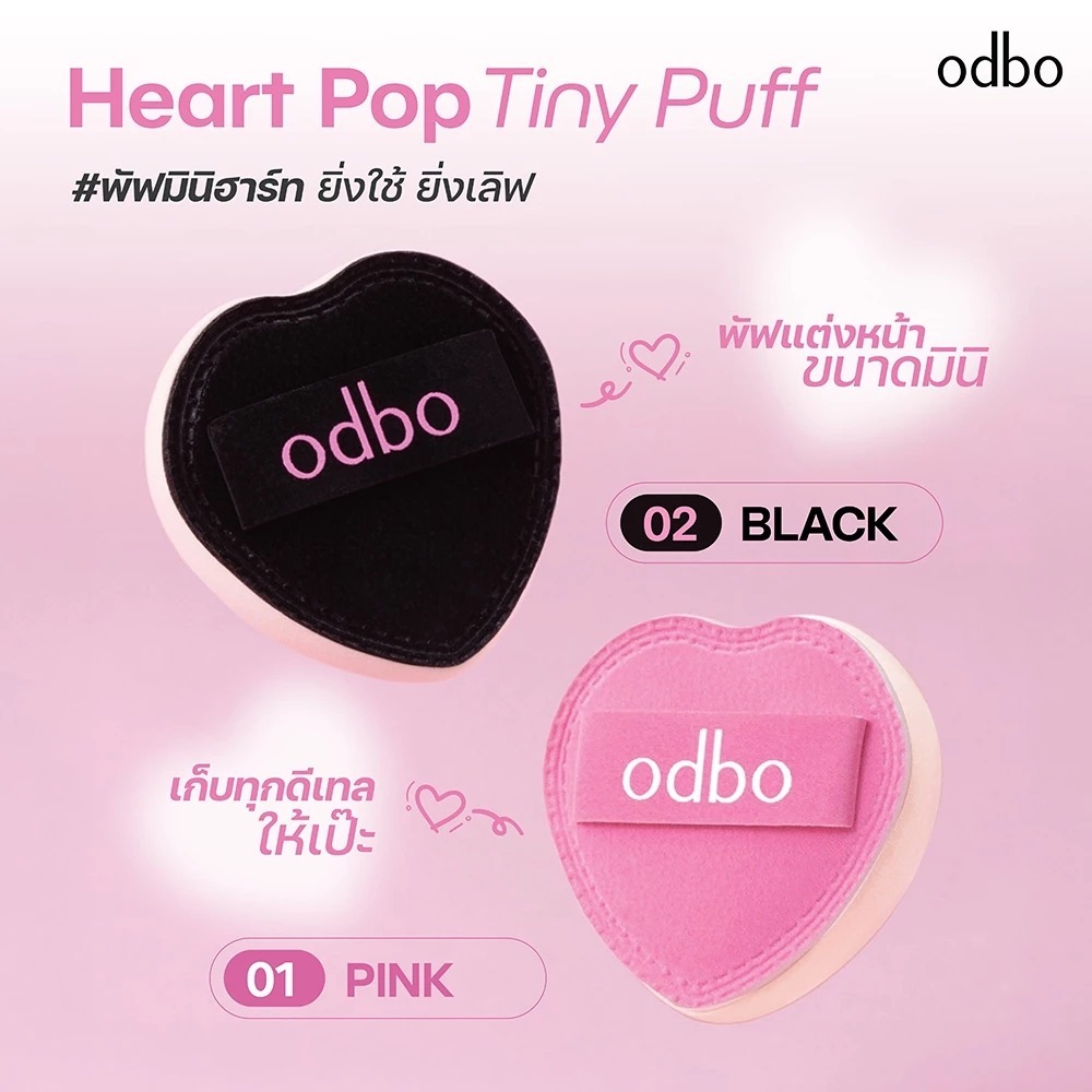 ถูก/แท้/มีไลฟ์ พัฟจิ๋ว ODBO Heart Pop Tiny Puff พัฟมินิฮาร์ท พัฟแต่งหน้า ทรงหัวใจ นุ่ม บางเบา ไซส์มินิ พกพาสะดวก
