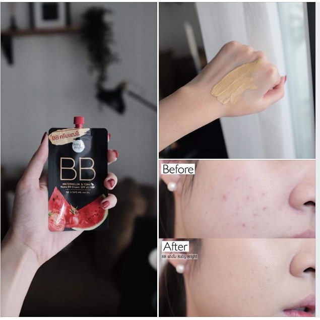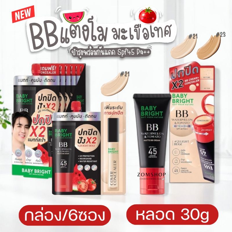 Baby Bright 🍉BB แตงโมมะเขือเทศ🍅【แมทท์ กันแดด กันน้ำ】Watermelon & Tomato Matte BB Cream SPF45 PA++