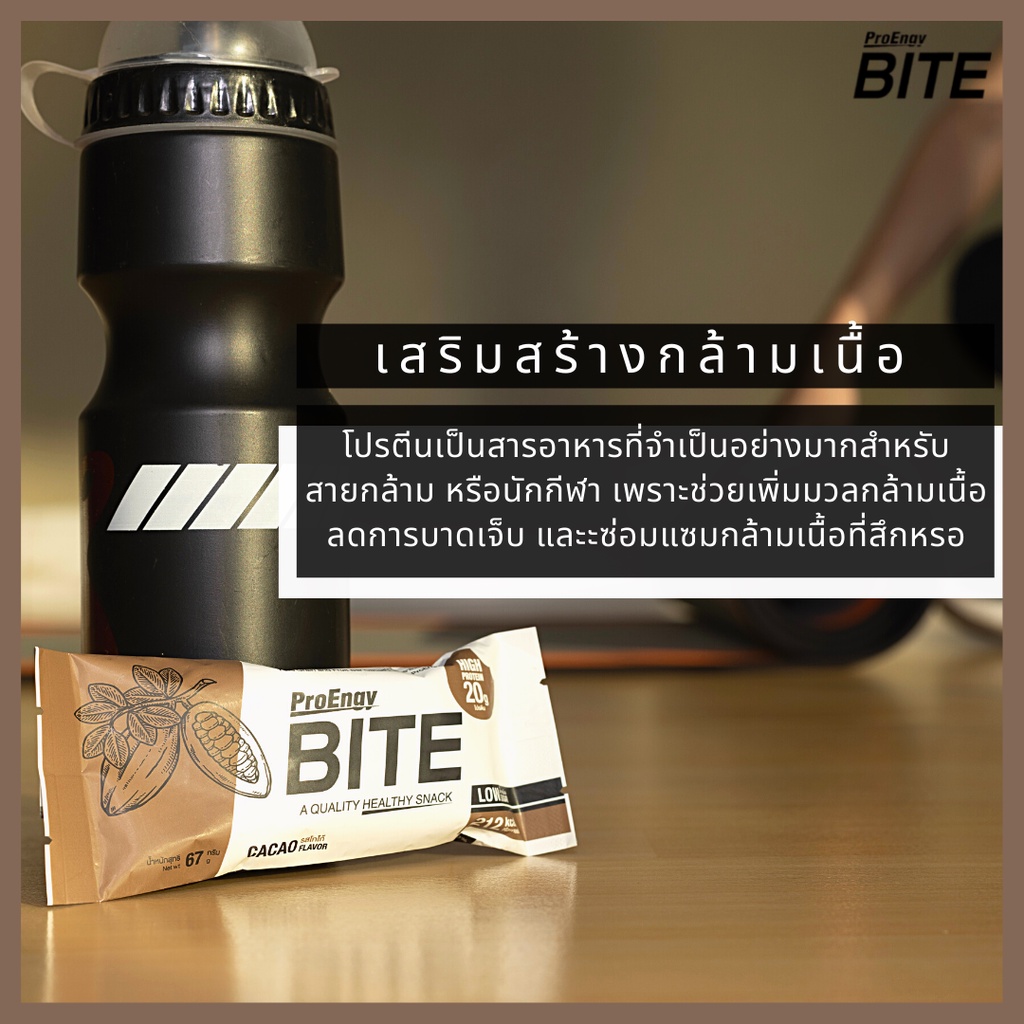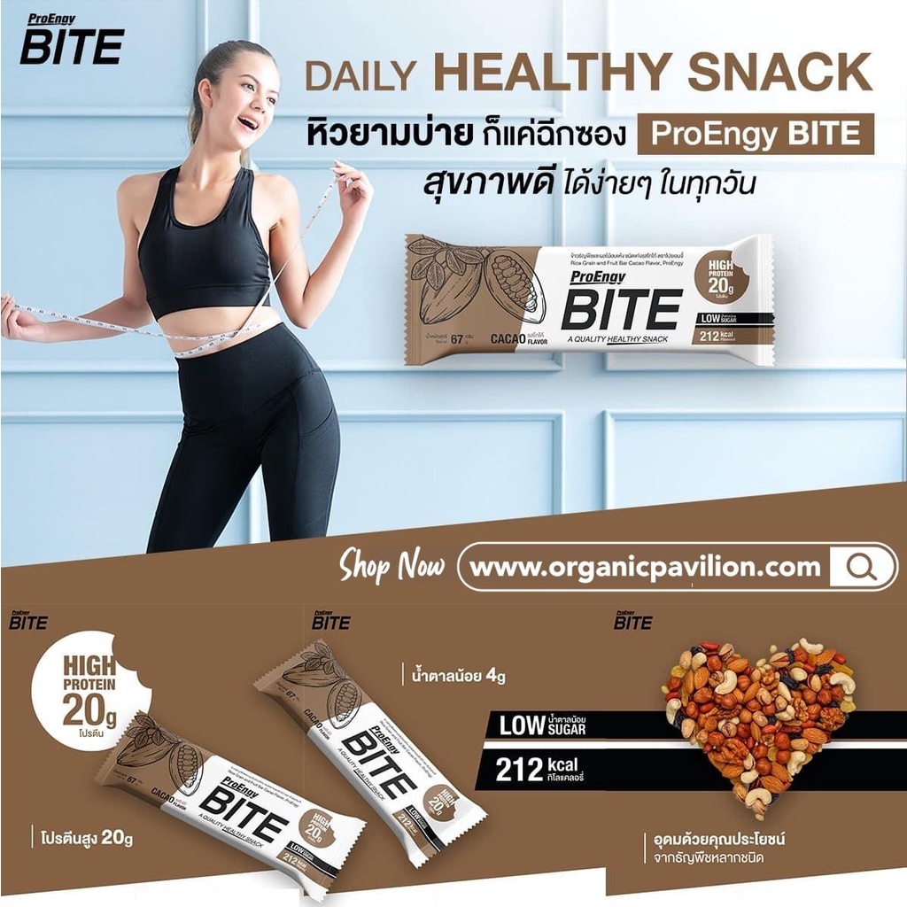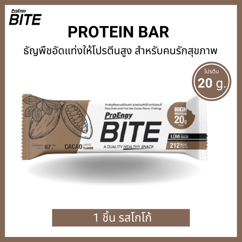ProEngy Bite : Protein Bar Cacao 212 Kcal./ Bar ธัญพืชอัดแท่งรสโกโก้ ขนมคนรักสุขภาพ โปรตีนสูง (1 Piece) (67 g)