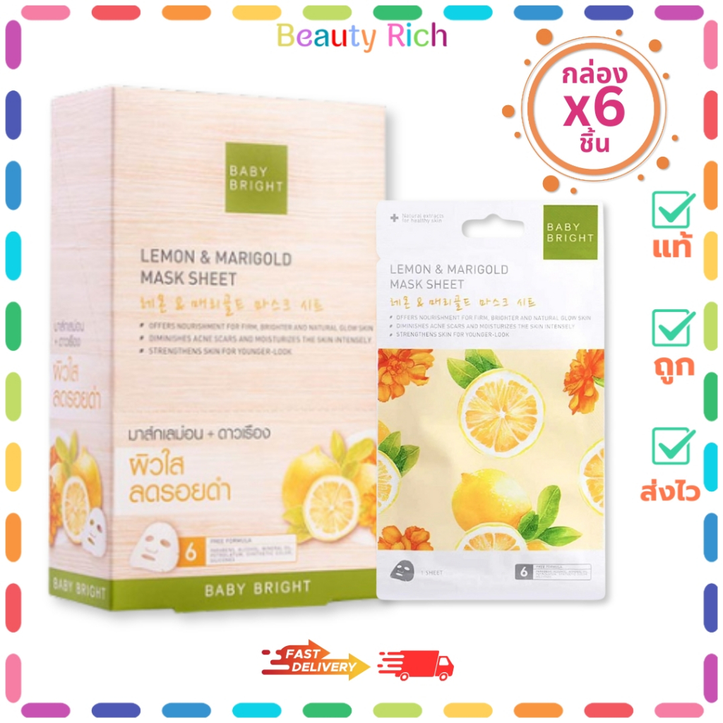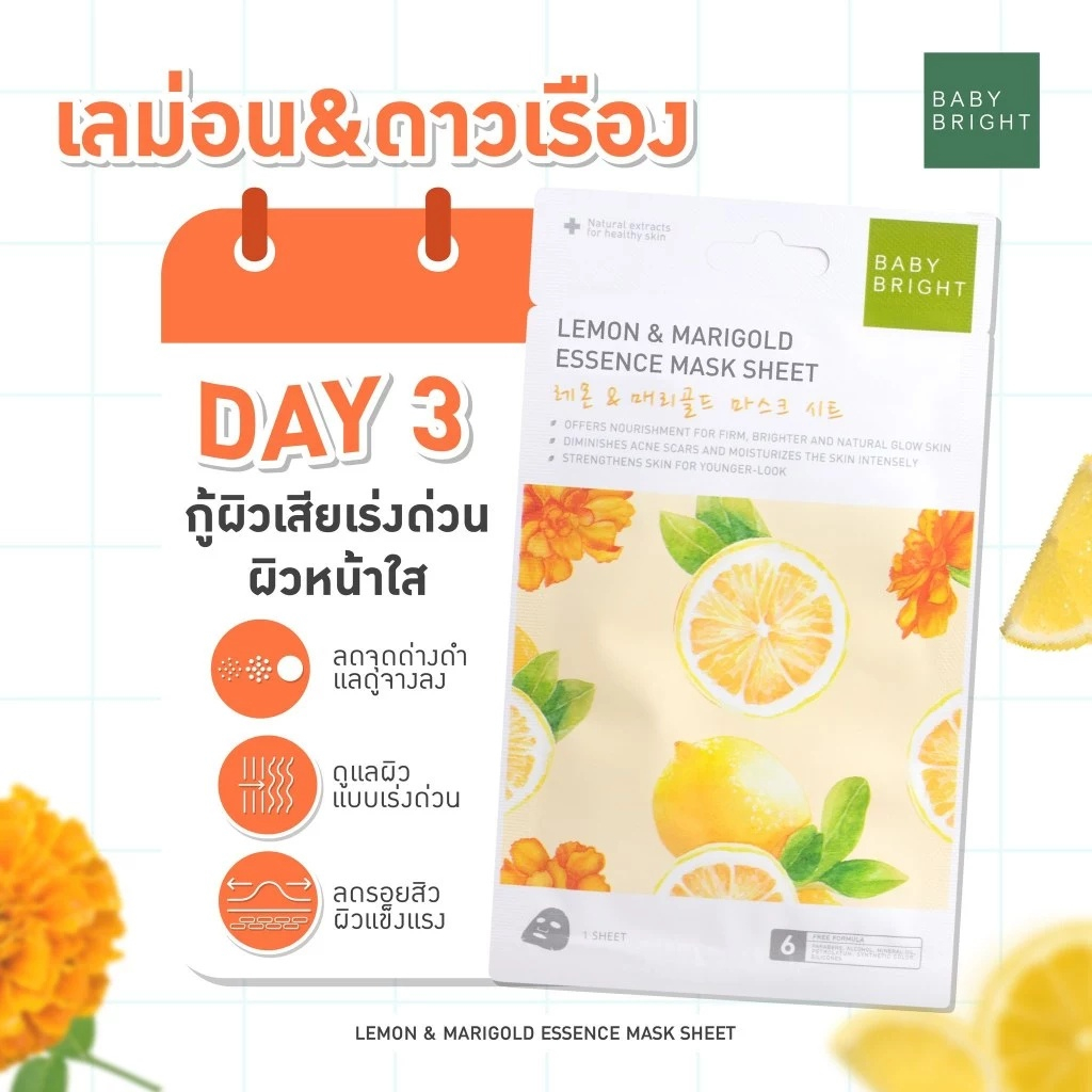 (กล่อง 6 ซอง) Baby Bright เอสเซนต์มาส์กชีท สูตร เลม่อน+ดาวเรือง (20 g.)