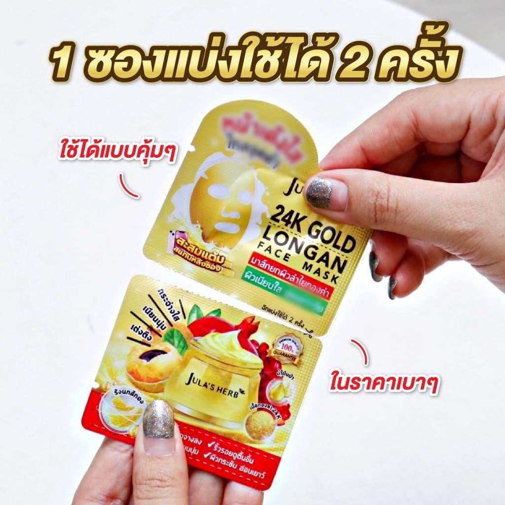 (6ซอง/กล่อง) Jula’s Herb 24k Gold Longan Face Mask 4g. มาสก์ลำไยทองคำ จุฬาเฮิร์บ