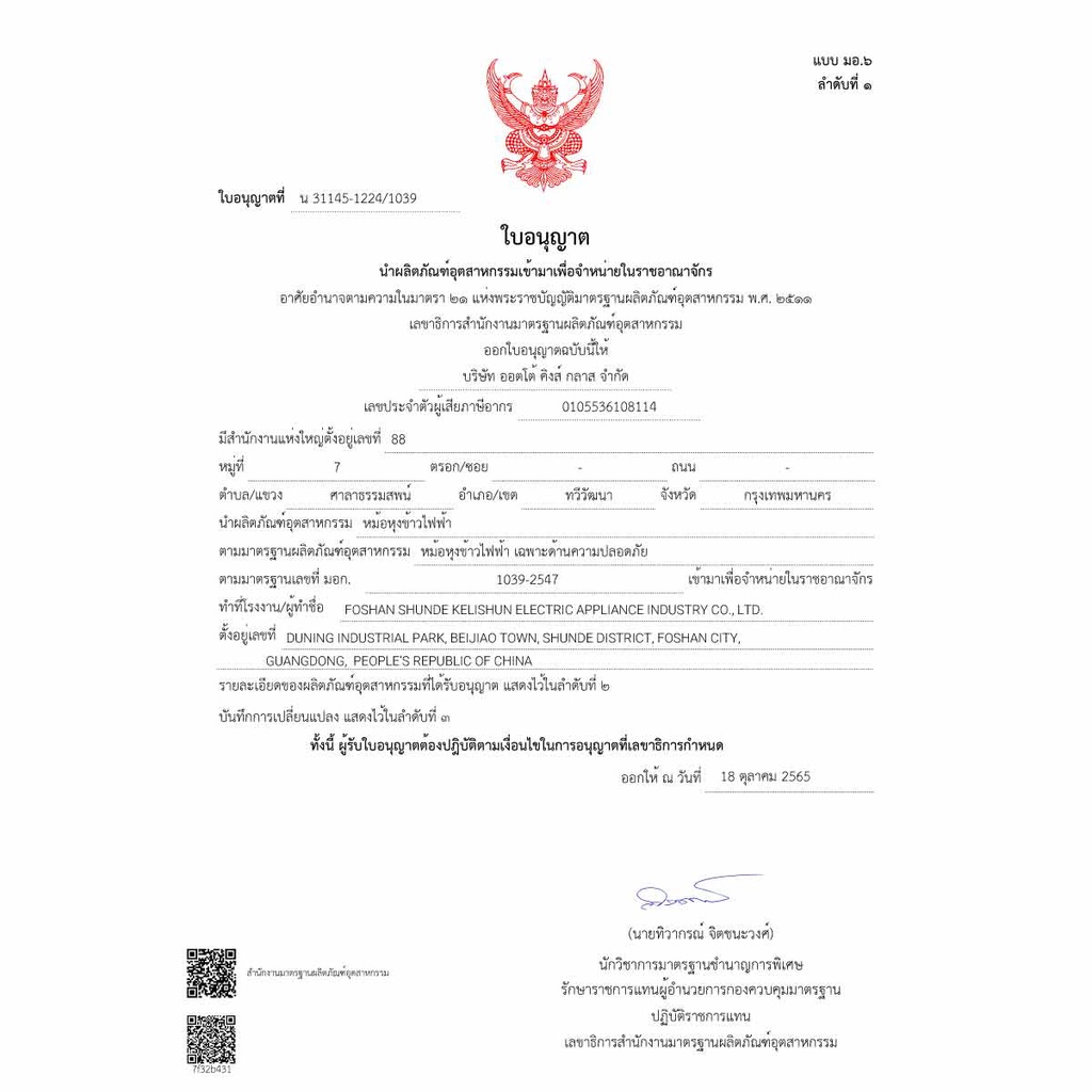 OTTO หม้อหุงข้าวไฟฟ้า ความจุ 1.0 ลิตร รุ่น CR-110T โดย สยามทีวี by Siam T.V.