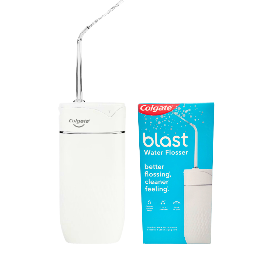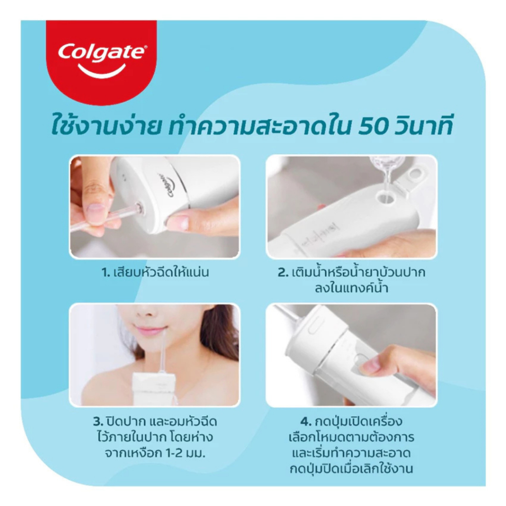 คอลเกต บลาสท์ วอเตอร์ ฟลอสเซอร์ ช่วยขจัดคราบพลัคซอกฟันและร่อง (ตัวเครื่องสีขาว) สินค้ารับประกันจากผู้ผลิต