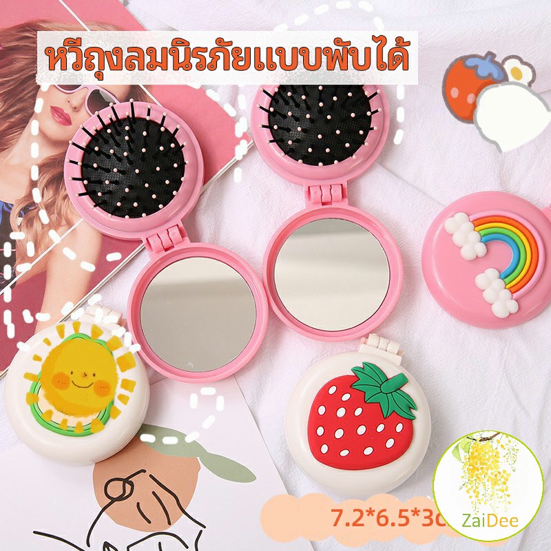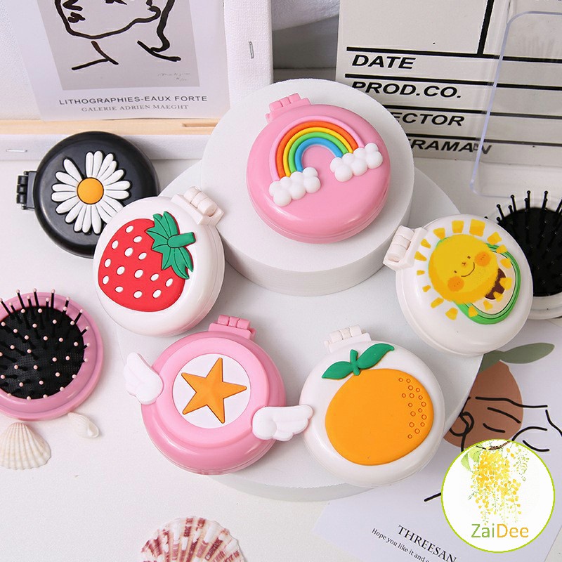 หวีกระจกพับแบบพกพา หวีลายการ์ตูนน่ารัก Folding Airbag Comb
