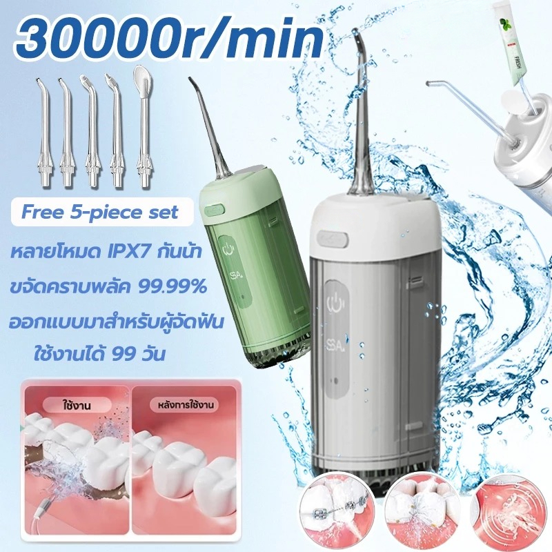 ไหมขัดฟันพลังน้ํา 4โหมด+4หัวฉีด กันน้ำ Memory Function Portable Oral Irrigator Dental Water Flosser IPX7