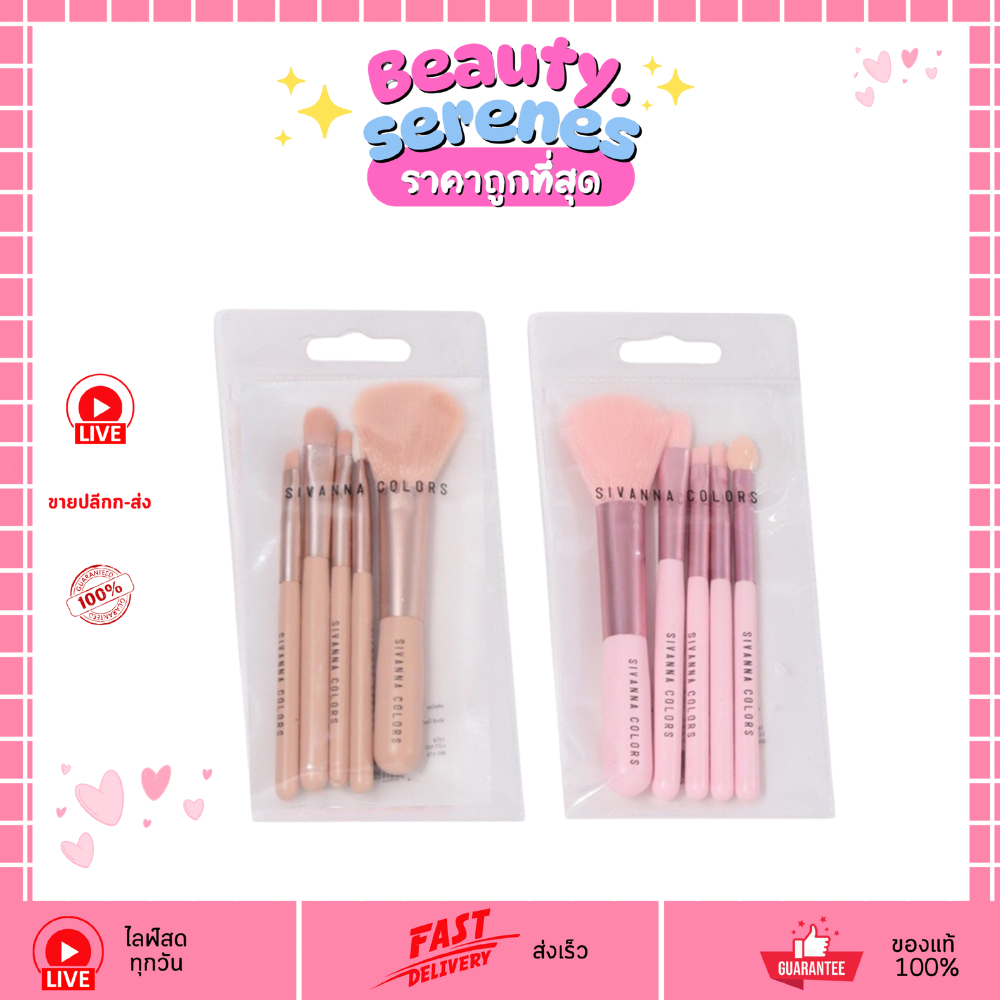 (1 เซ็ต) BR-170 Sivanna Color Brush Set ชุดแปรงแต่งหน้า 5 ชิ้น (คละสี)