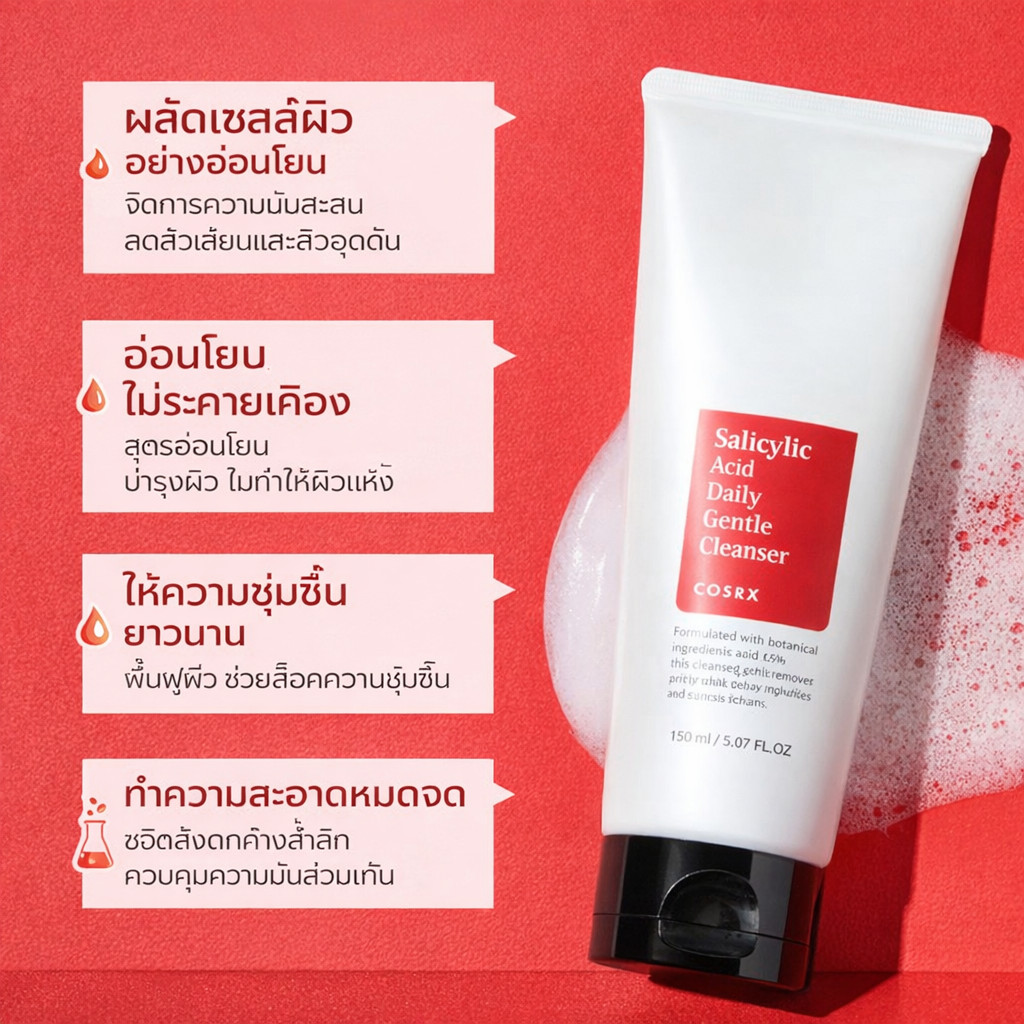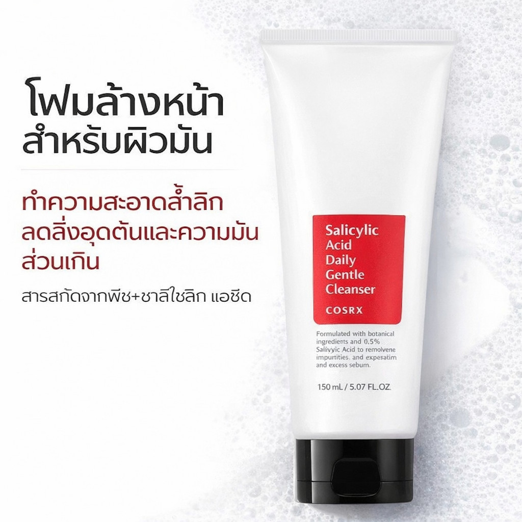 COSRX ครีมล้างหน้ากรดซาลิไซลิกควบคุมความมันสิวสดชื่นให้ความชุ่มชื้นโฟมทำความสะอาดอ่อนโยน150มล.