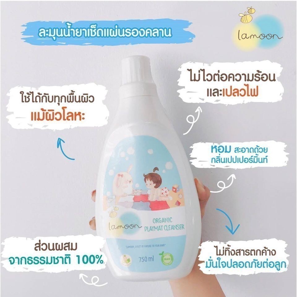 Lamoon ละมุน น้ำยาทำความสะอาดแผ่นรองคลาน คอกกั้นเด็ก ใช้ได้กับทุกพื้นผิว Playmat Cleanser 750ml