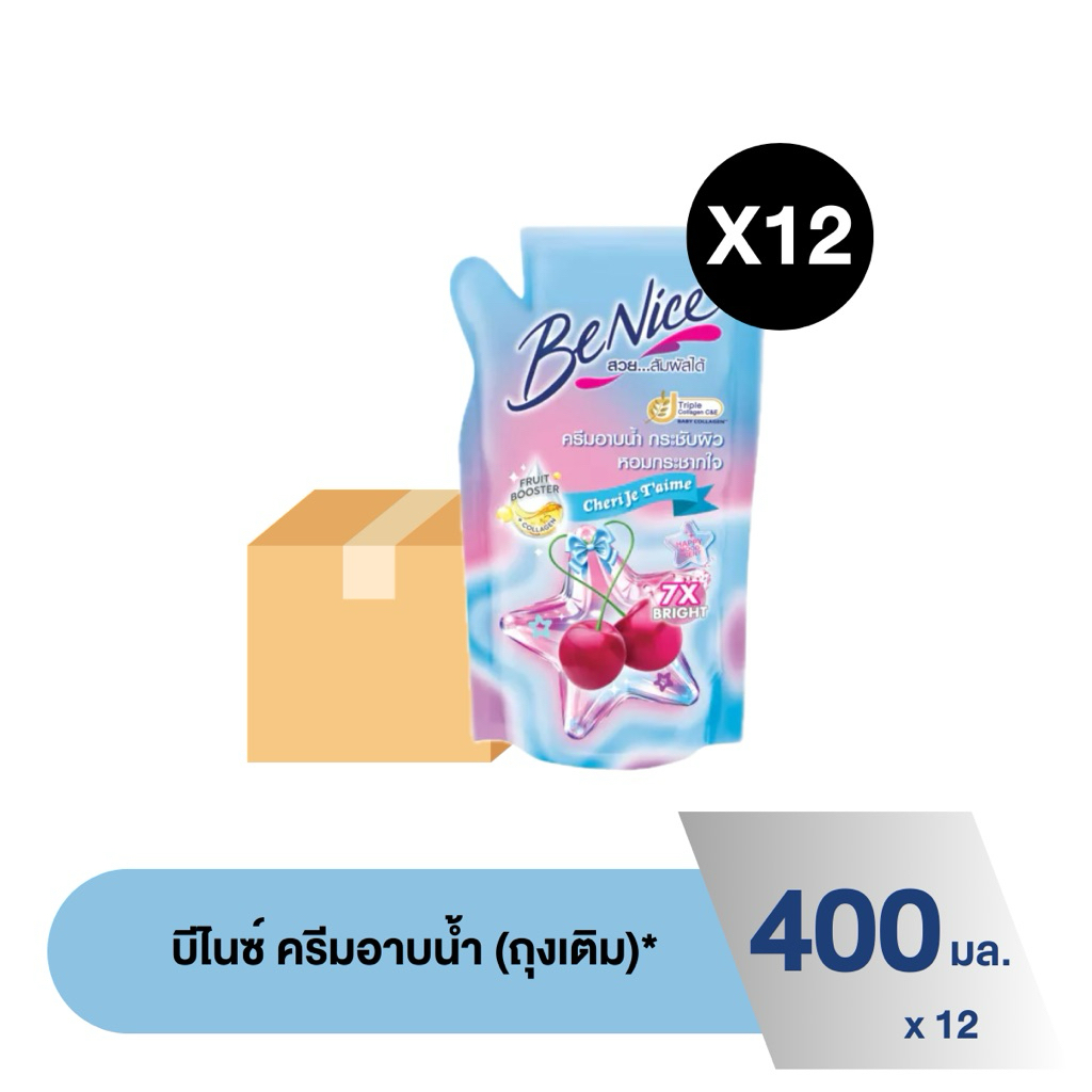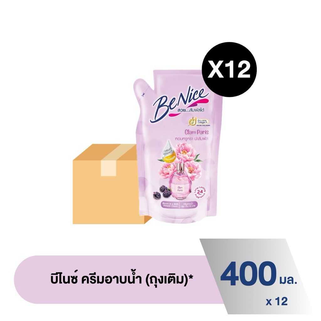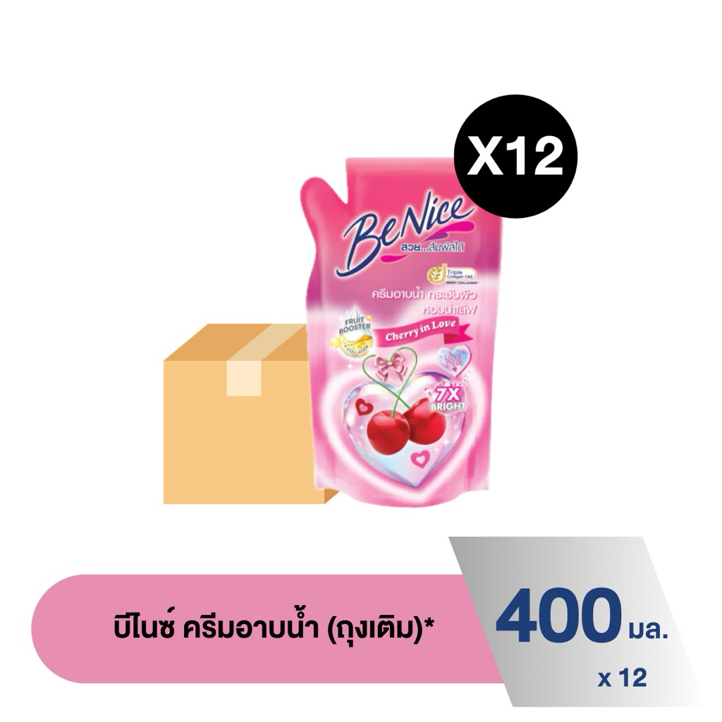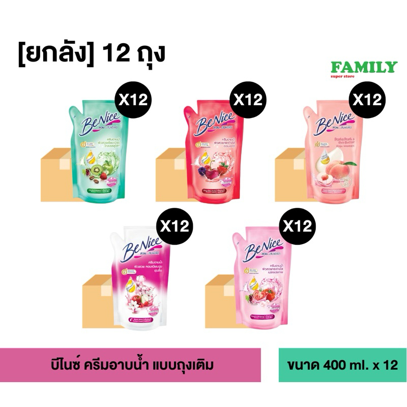 [ยกลัง] บีไนซ์ ครีมอาบน้ำ สบู่เหลว ถุงเติม 400 มล x 12 ถุง
