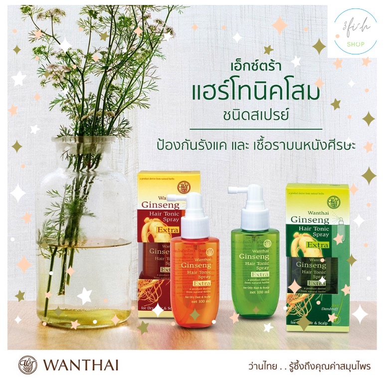 Wanthai Ginseng Hair Tonic Spray Extra ว่านไทย เอ็กซ์ตร้า แฮร์โทนิคโสม ชนิดสเปรย์ 100 มล.