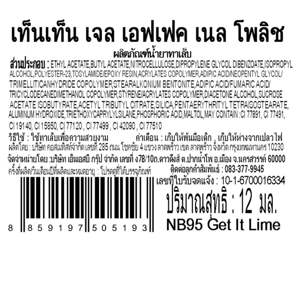 Ten Ten เท็น เท็น น้ำยาทาเล็บ เจล เอฟเฟค 12มล. NB95 เก็จ อิท ไลม์