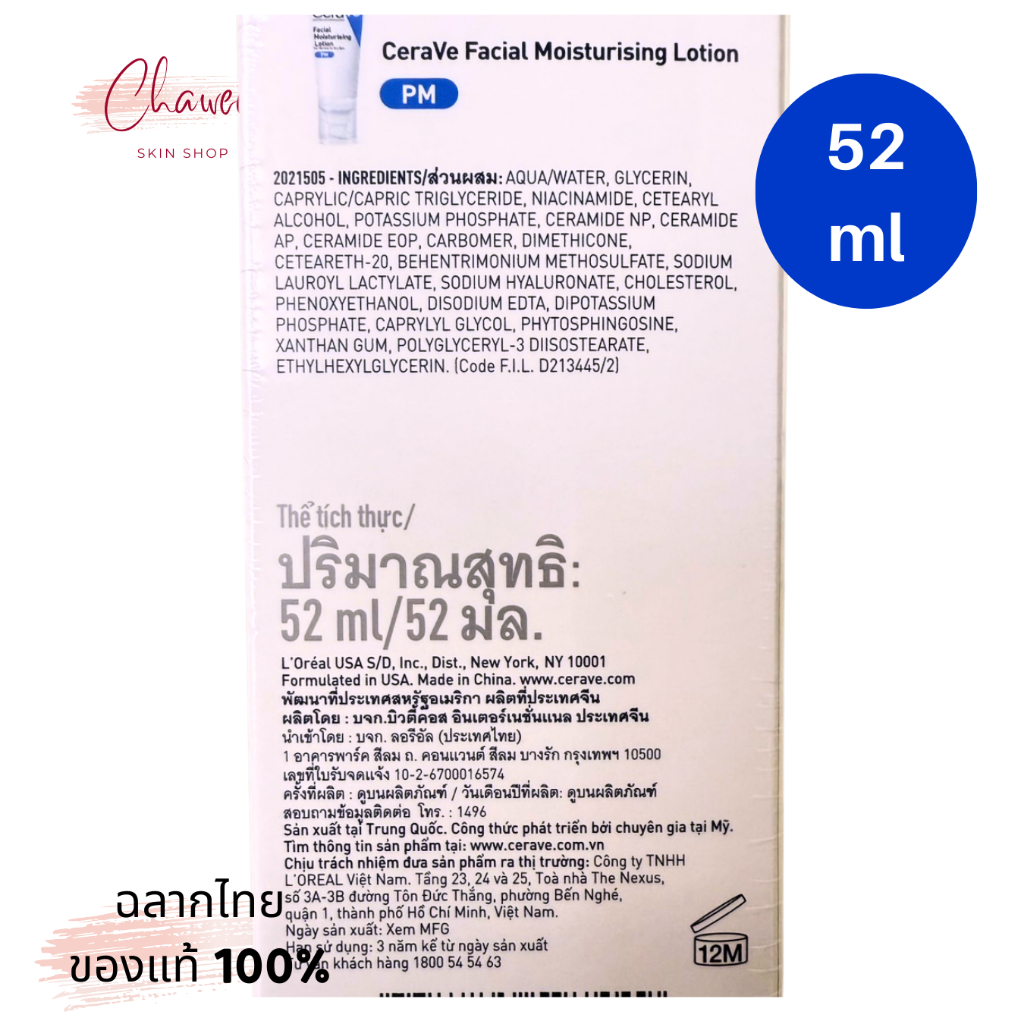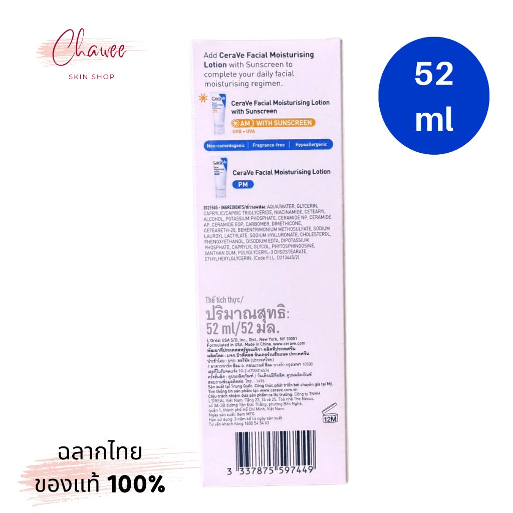 CERAVE Facial Moisturizing Lotion PM 52 ml เซราวี มอยส์เจอร์ไรซิ่งโลชั่น บำรุงผิว