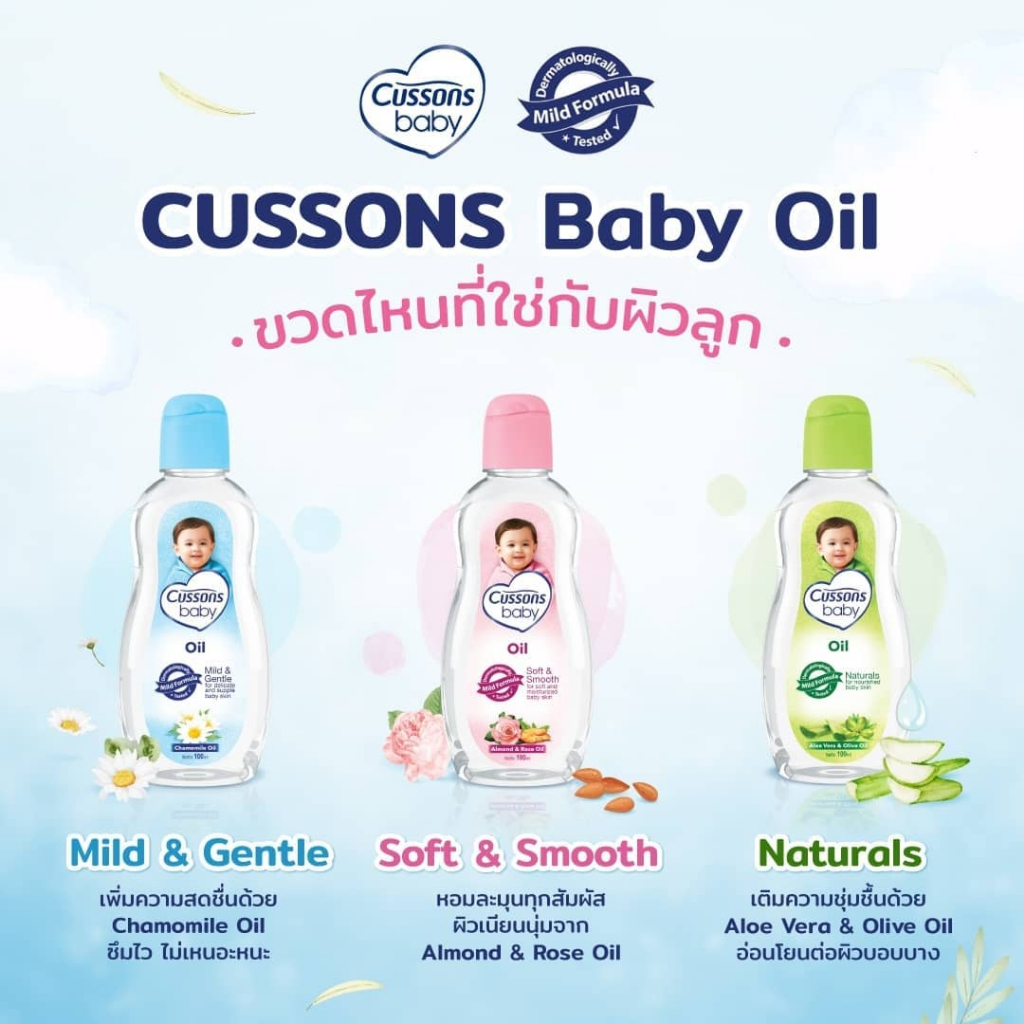 ถูก/แท้/มีไลฟ์ (1แถม1 ในแพคเกจ) เบบี้ออยล์ Cussons Baby Oil คัสสันเบบี้ออยล์ ออยล์ บำรุงผิว เนื้อใส อ่อนโยน ผิวนุ่ม