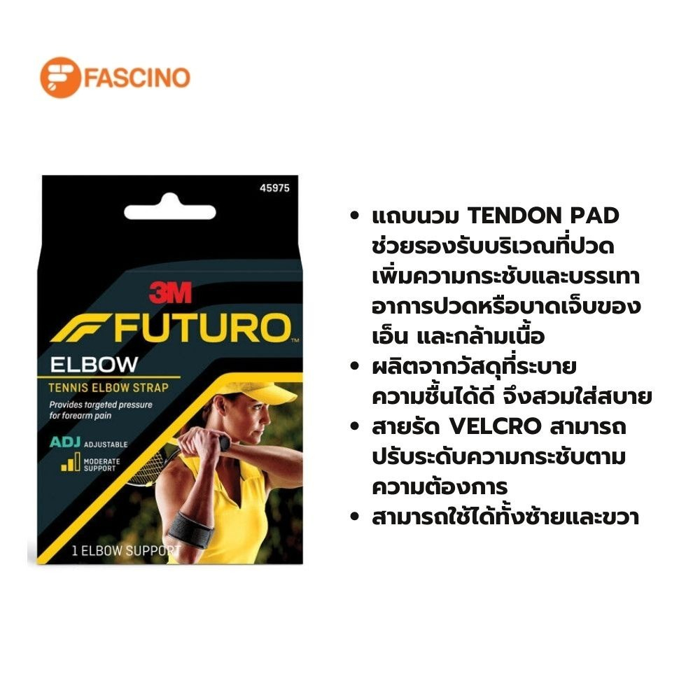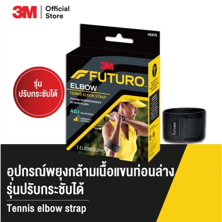 FUTURO ฟูทูโร อุปกรณ์พยุงข้อศอก Tennis Elbow สำหรับอาการเทนนิสเอลโบ ปรับกระชับได้ ฟรีไซส์ สีดำ