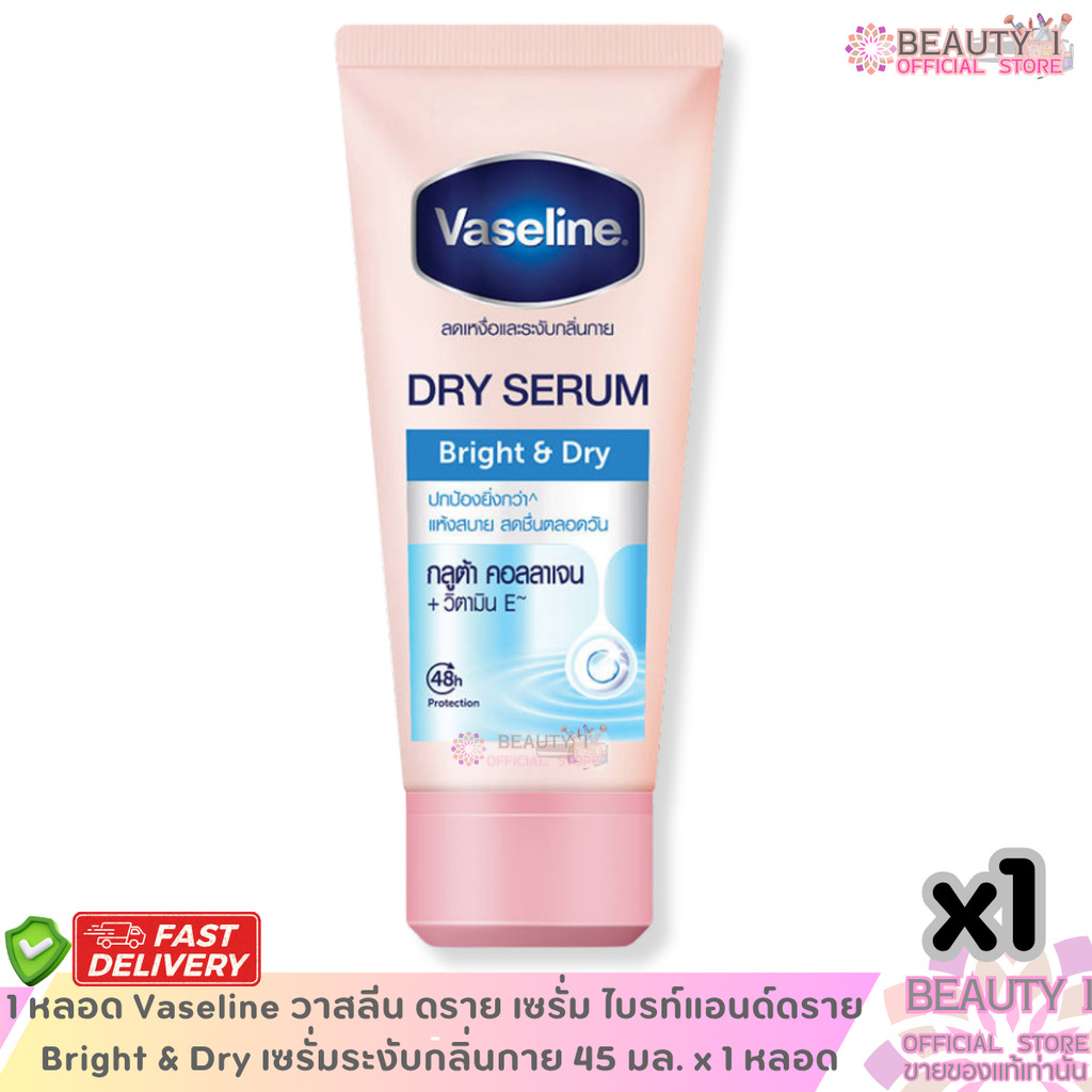 1 หลอด Vaseline วาสลีน ดราย เซรั่ม ไบรท์แอนด์ดราย Bright & Dry เซรั่มระงับกลิ่นกาย 45 มล. x 1 หลอด