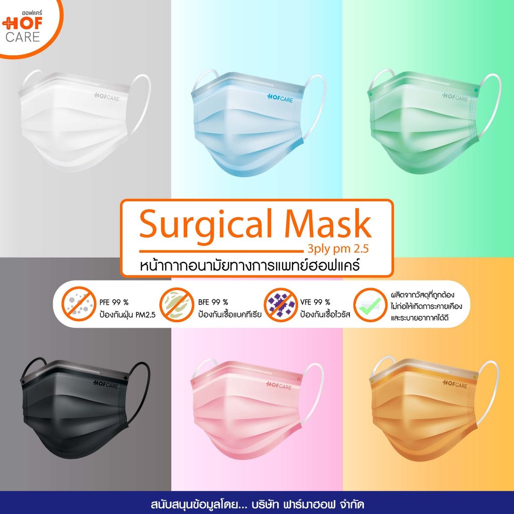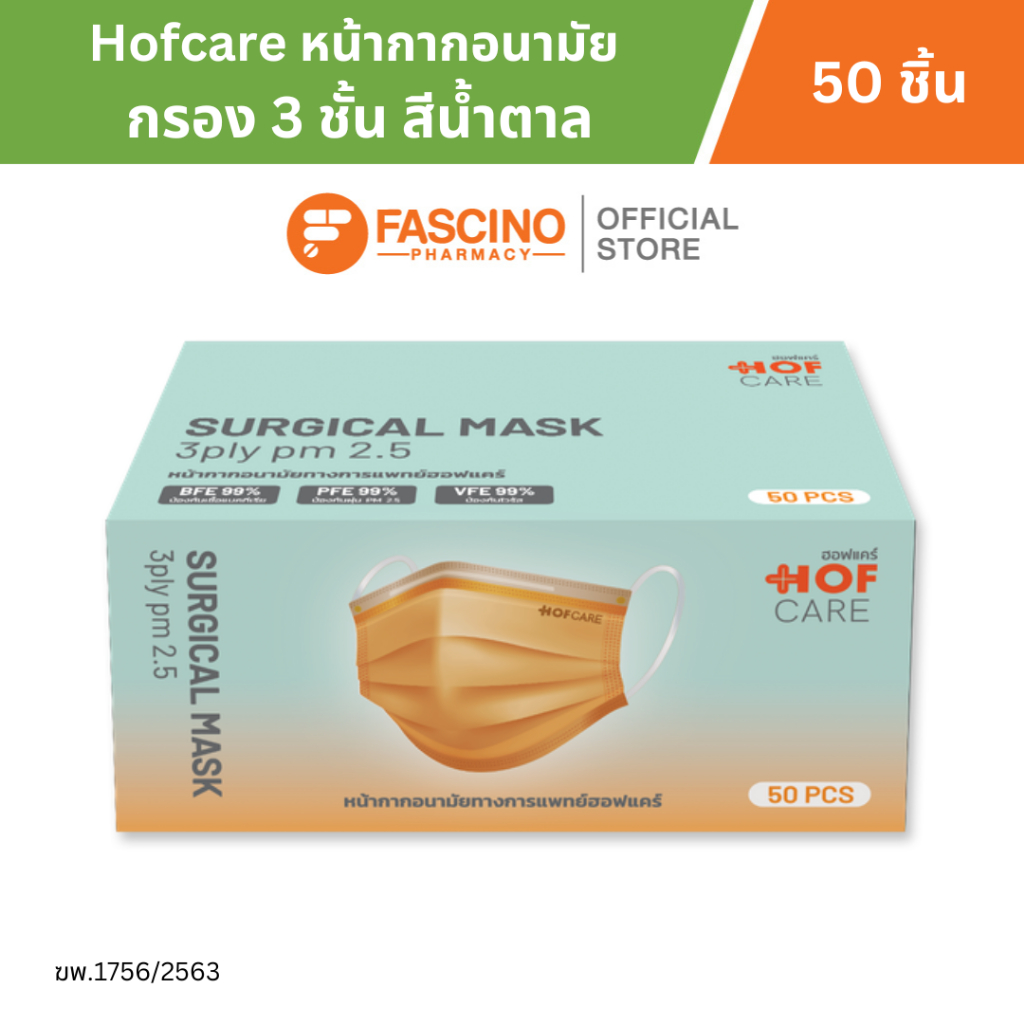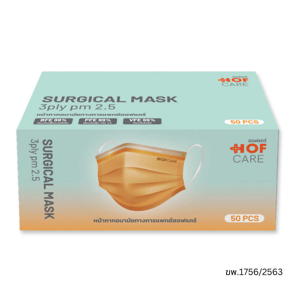 Hofcare หน้ากากอนามัย กรอง 3 ชั้น สีน้ำตาล บรรจุ 50 ชิ้น ป้องกันฝุ่นละออง PM 2.5 สวมใส่สบาย ระบายอากาศได้ดี