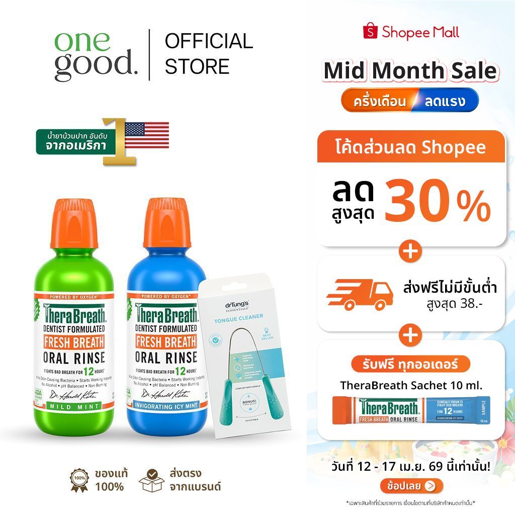 [ แพ็คคู่สุดคุ้ม ] น้ำยาบ้วนปาก TheraBreath + ที่ทำความสะอาดลิ้น Tongue Cleaner (คละสี) | จบเรื่องกลิ่นปาก