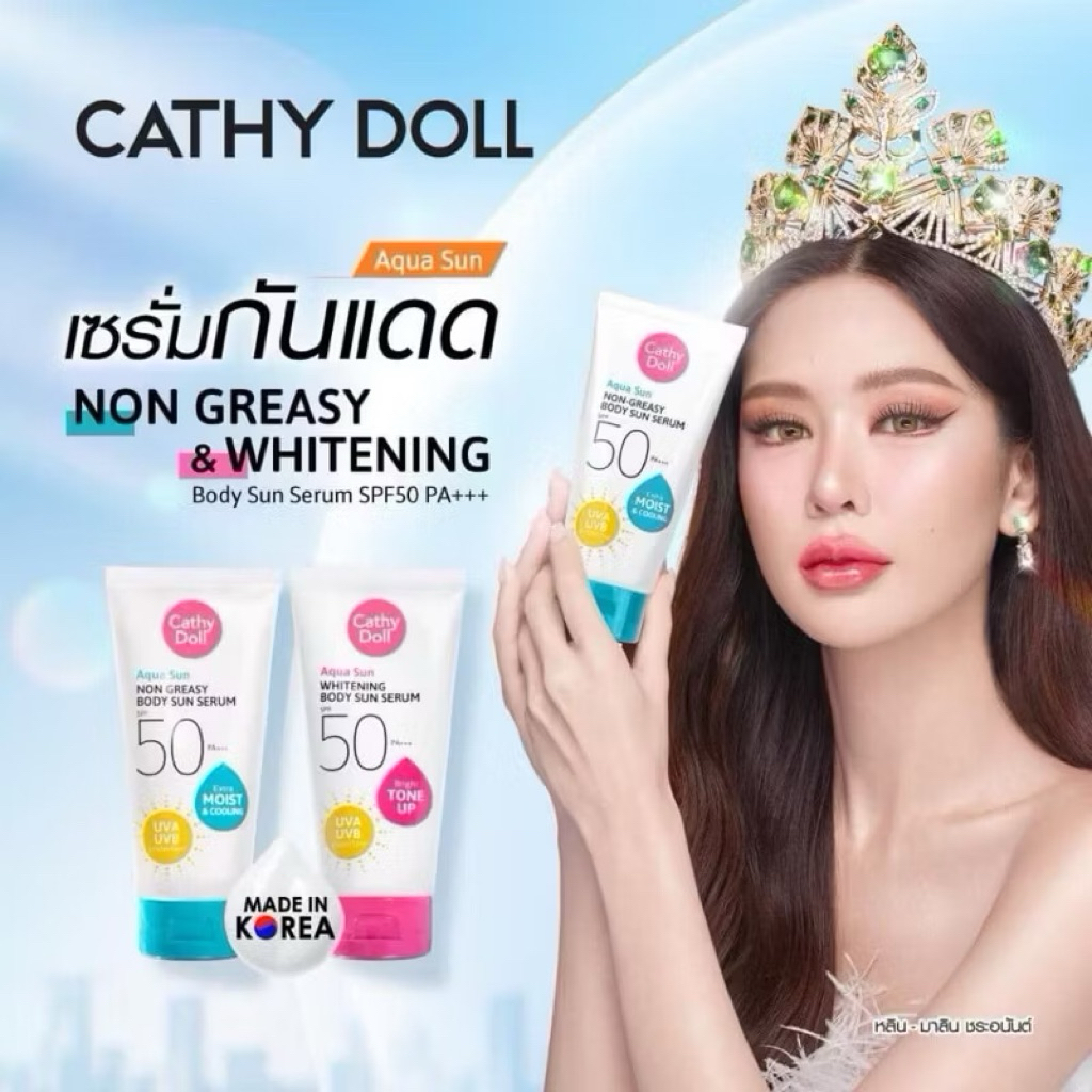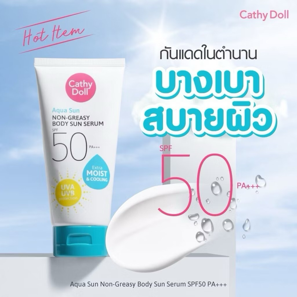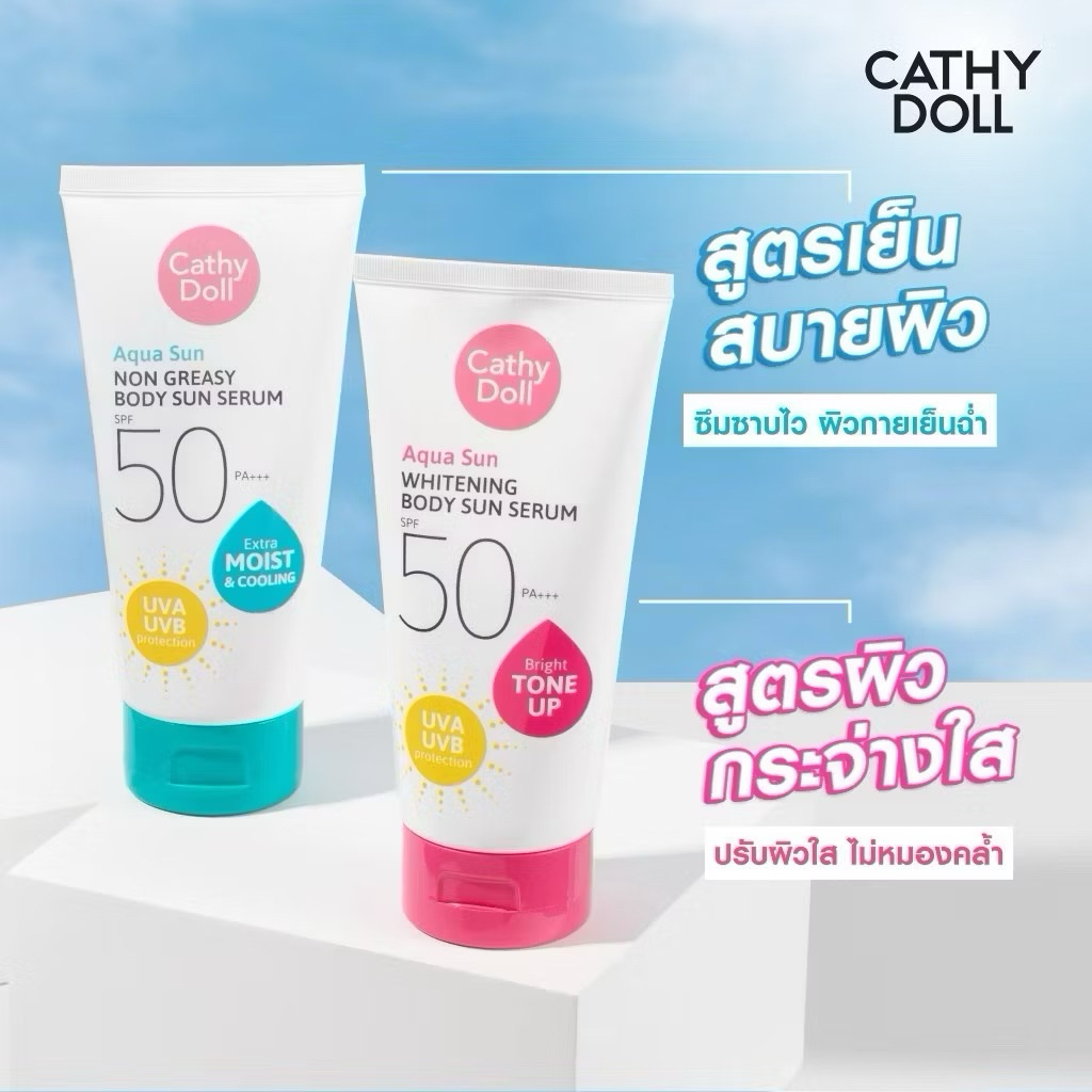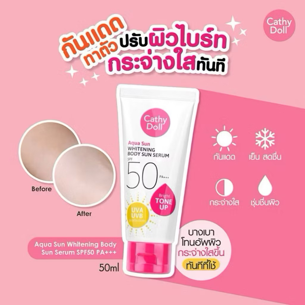 Cathy Doll ครีมกันแดดทาตัวเคที่ดอลล์ อควาซันนอนเกรซี่บอดี้ซันเซรั่ม / ไบร์ทเทนนิ่งซันเซรั่ม เอสพีเอฟ50 พีเอ+++ 50ml