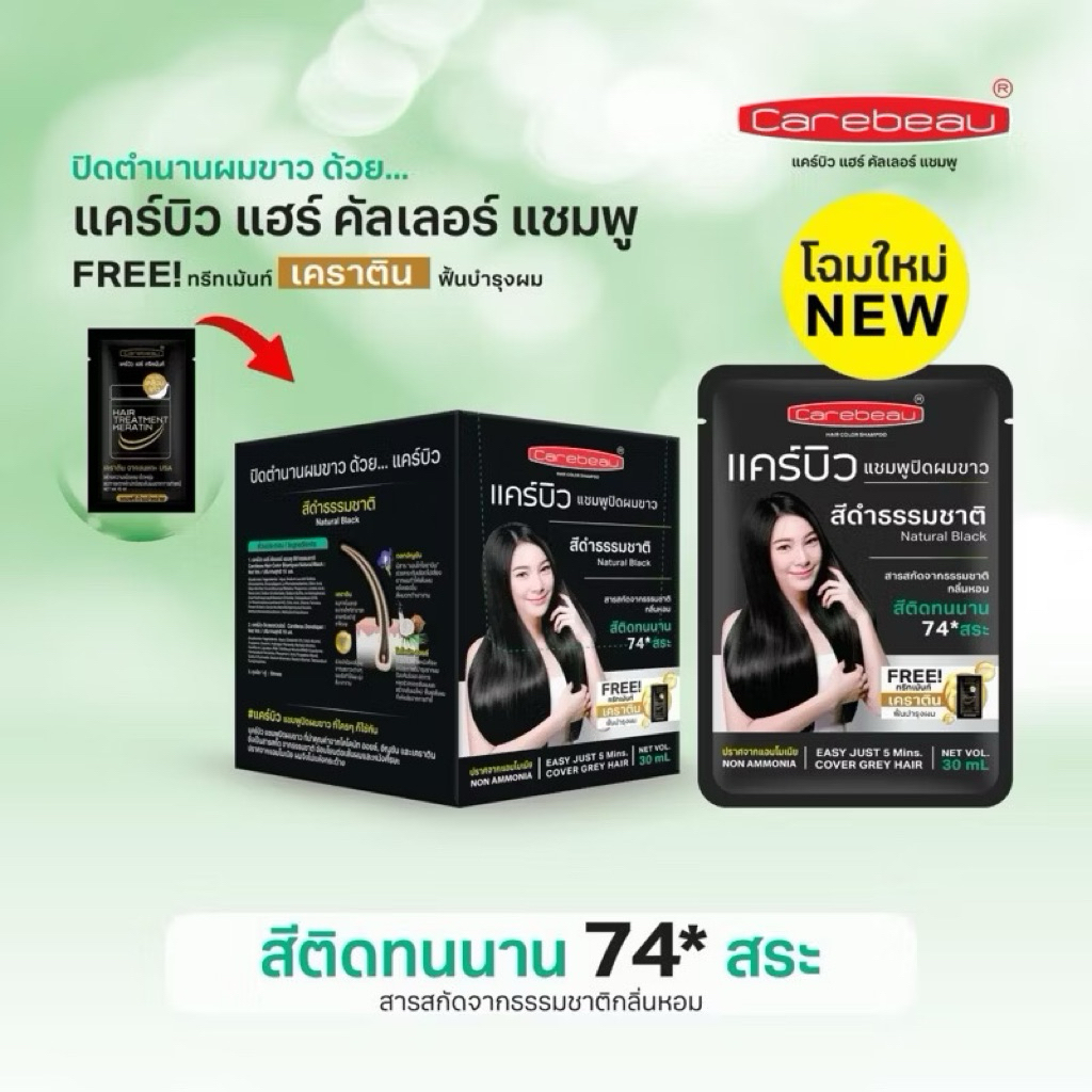 Carebeau hair color shampoo #แชมพู #ปิดผมขาว แคบิว แฮร์คัลเลอร์ ขายแยก 1ซอง