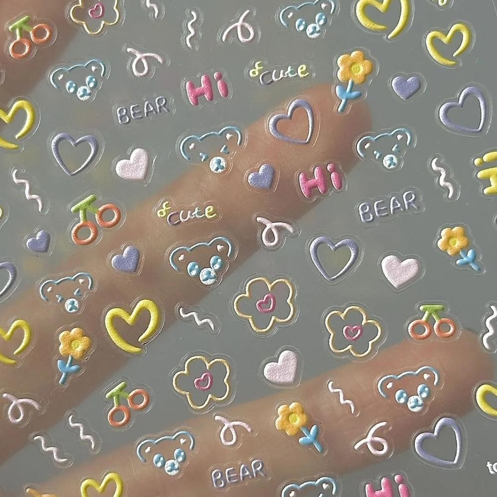 [cod]กาวบรรเทาน่ารักยิ้มใบหน้าตุ๊กตาหมีDecalsสติกเกอร์ศิลปะ5dสติกเกอร์อุปกรณ์เล็บS5u4
