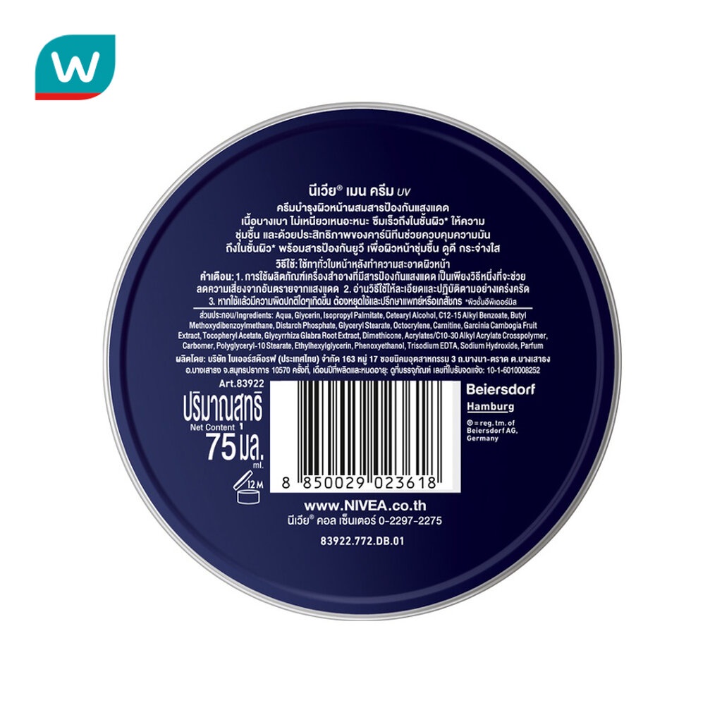 Nivea นีเวีย เมน ครีม 75 มล. ครีมบำรุงผิวหน้า ป้องกันแสงแดด