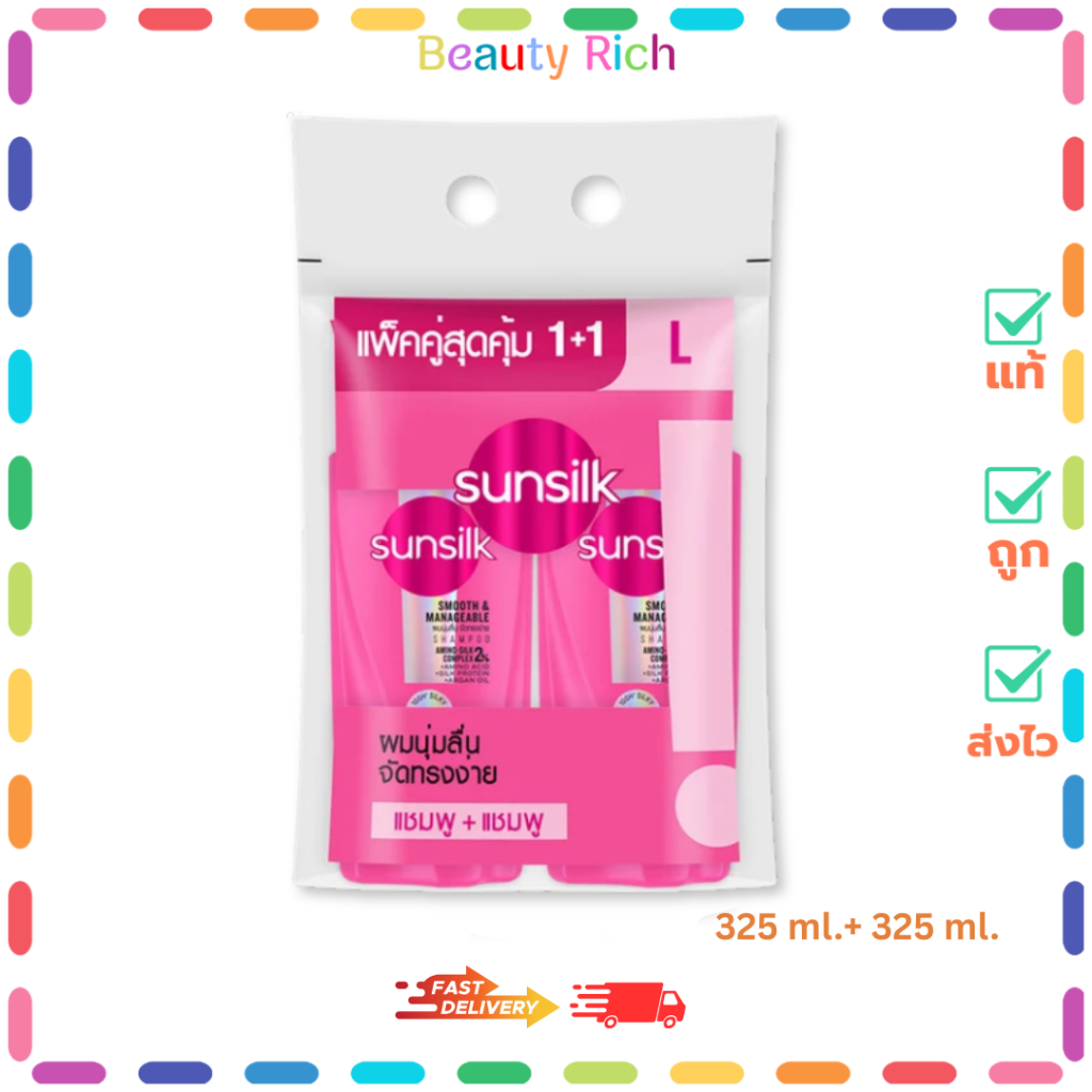 (ขวดแพ็คคู่) Sunsilk (สีชมพู) ซันซิล แชมพู+แชมพู (325 ml.+ 325ml.)