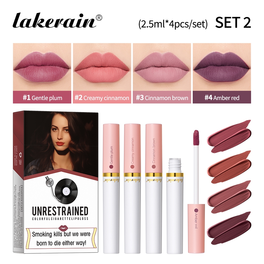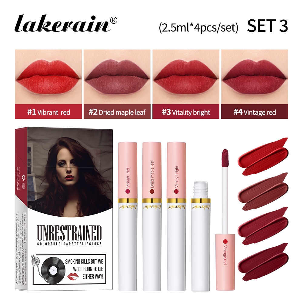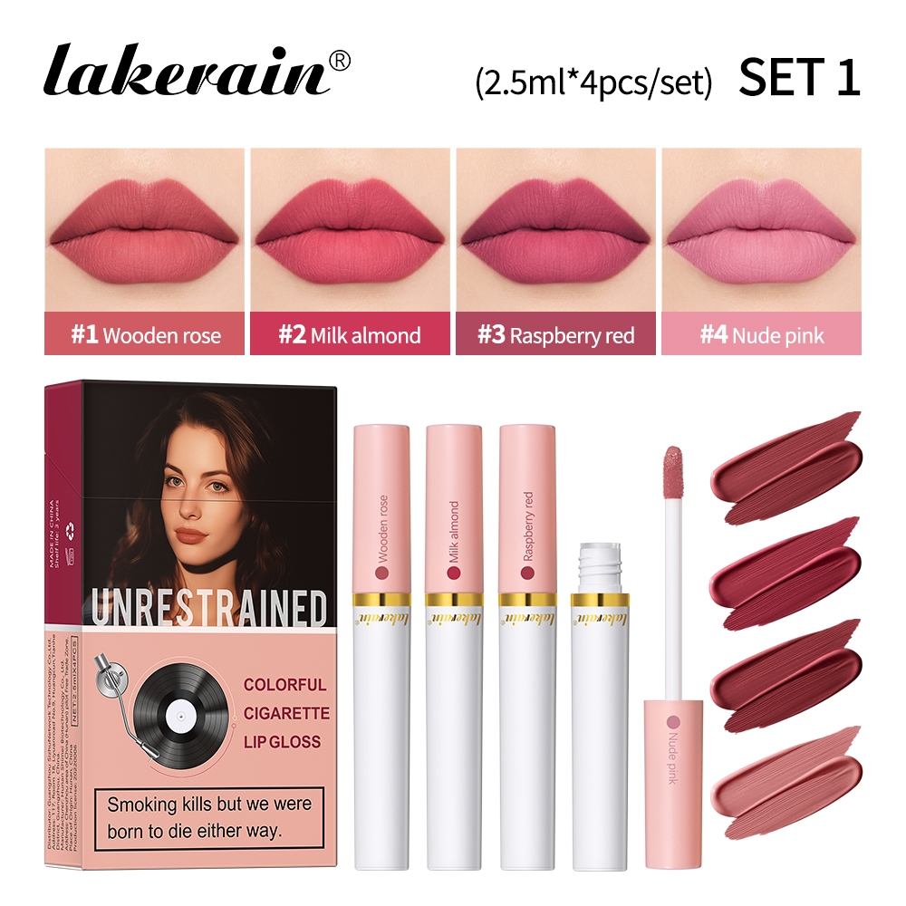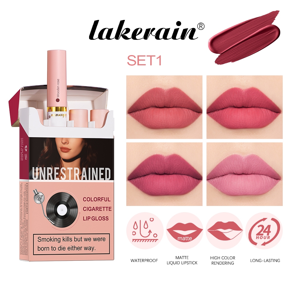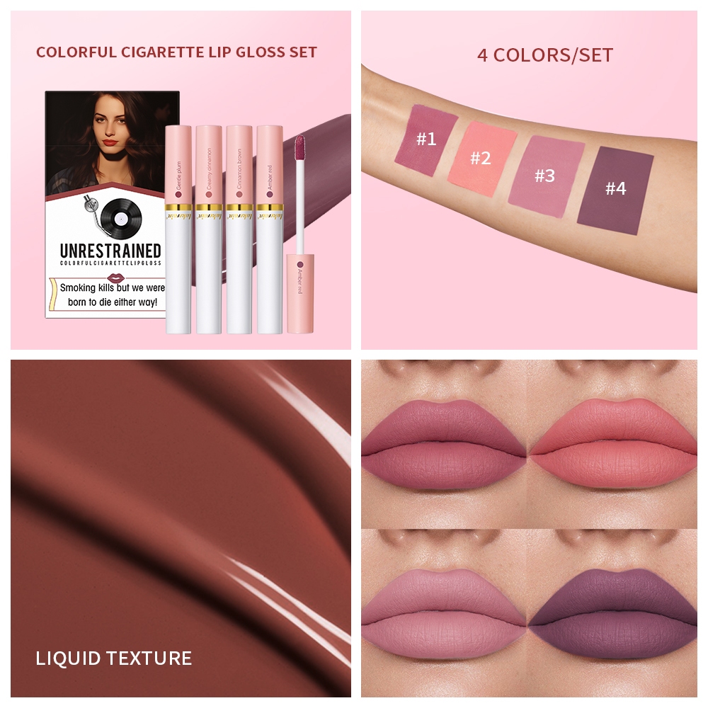 Ibcccndc สร้างสรรค์ บุหรี่ ลิปกลอส ชุด 4 สี ติดทนนาน กันน้ํา เนื้อแมตต์ ลิปกลอส หลอด สีนู้ด สีแดง ชุดลิปสติก