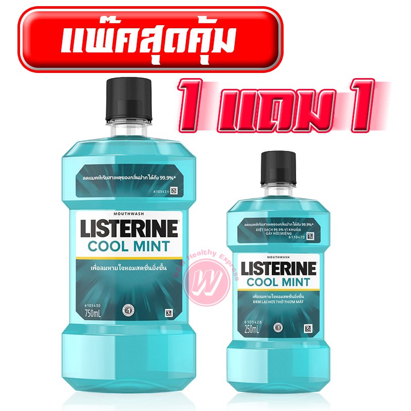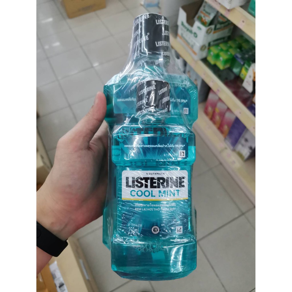 ลิสเตอรีน น้ำยาบ้วนปาก แพ็คสุดคุ้ม Listerine cool mint ขนาด 750 ml + 250 ml น้ำยาบ้วนปากลิสเตอรีนแพ็คคู่ ดับกลิ่นปาก