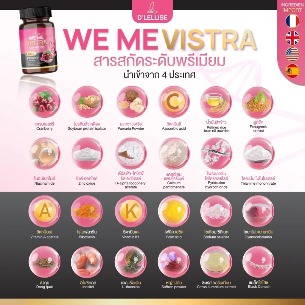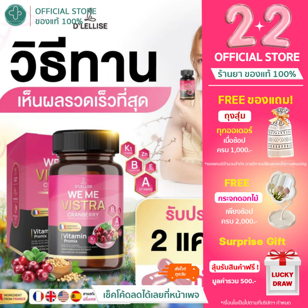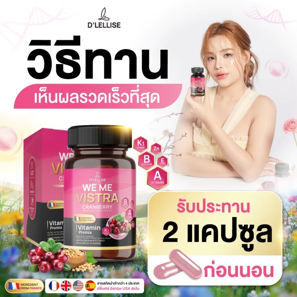 D'LELLISE WE ME VISTRA วี มี วิสทร้า ต รา ดีเลลลิสเซ่ ของแท้ 100 % 1 กระปุกมี 30 แคปซูล ต้านอนุมูนอิสระ ช่วยทำให้นอนหลับ