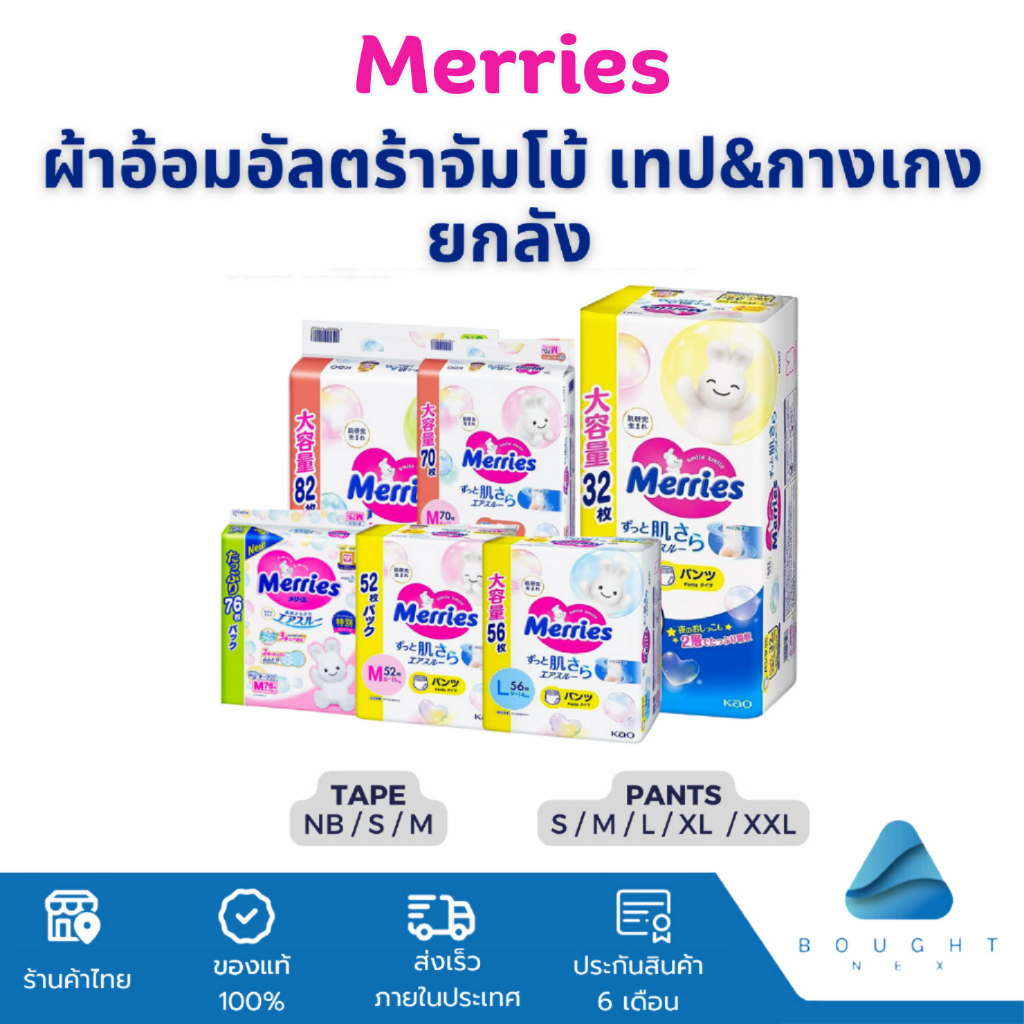 [ยกลัง] Merries Ultra Jumbo เมอร์รี่ส์ ผ้าอ้อมสำเร็จรูป รุ่นอัลตร้าจัมโบ้ เทป&กางเกง นุ่มพิเศษ Made in Japan