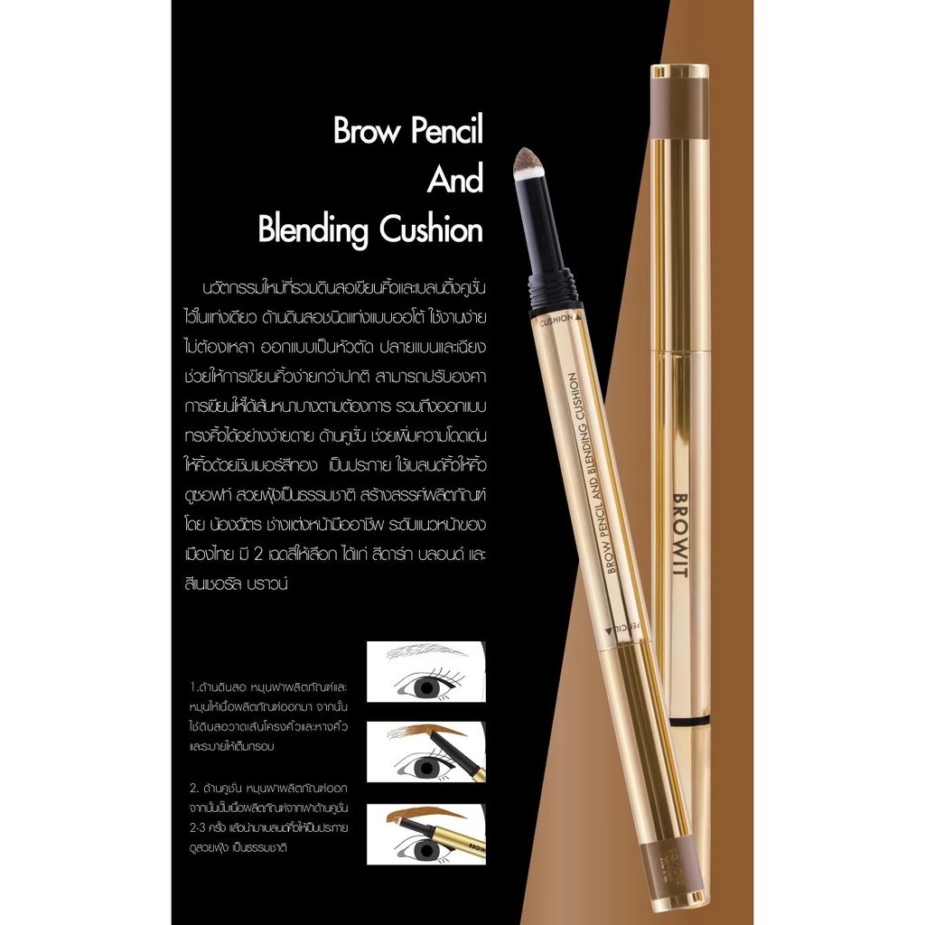 Browit By NongChat Brow Pencil And Blending Cushion 2in1 ที่เขียนคิ้วน้องฉัตร+คุชชั่นคิ้ว