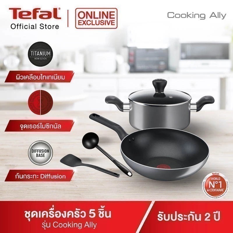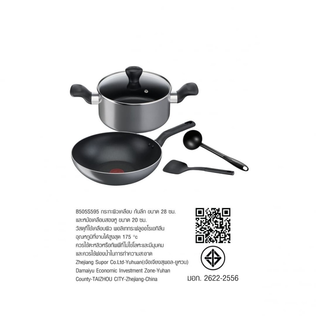 Tefal Cooking Ally เซ็ตเครื่องครัว 5 ชิ้น รุ่น B505S595 : กระทะก้นลึก 28 ซม. + หม้อ 2 หู 20 ซม. + กระบวย + ตะหลิว