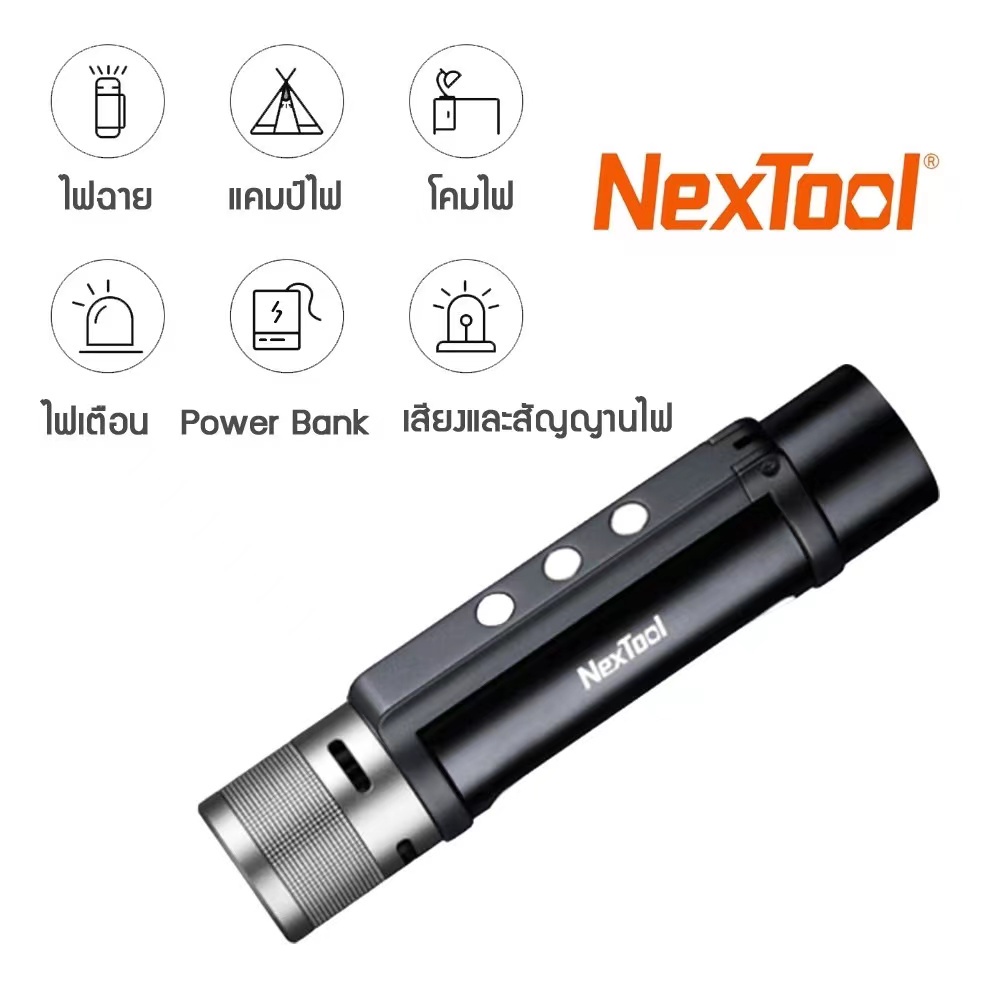 NexTool ไฟฉาย ไฟฉายฉุกเฉิน ไฟฉายตั้งแคมป์ ไฟฉายสว่างมากOutdoor 6 in 1 LED Flashlight Ultra Bright Torch