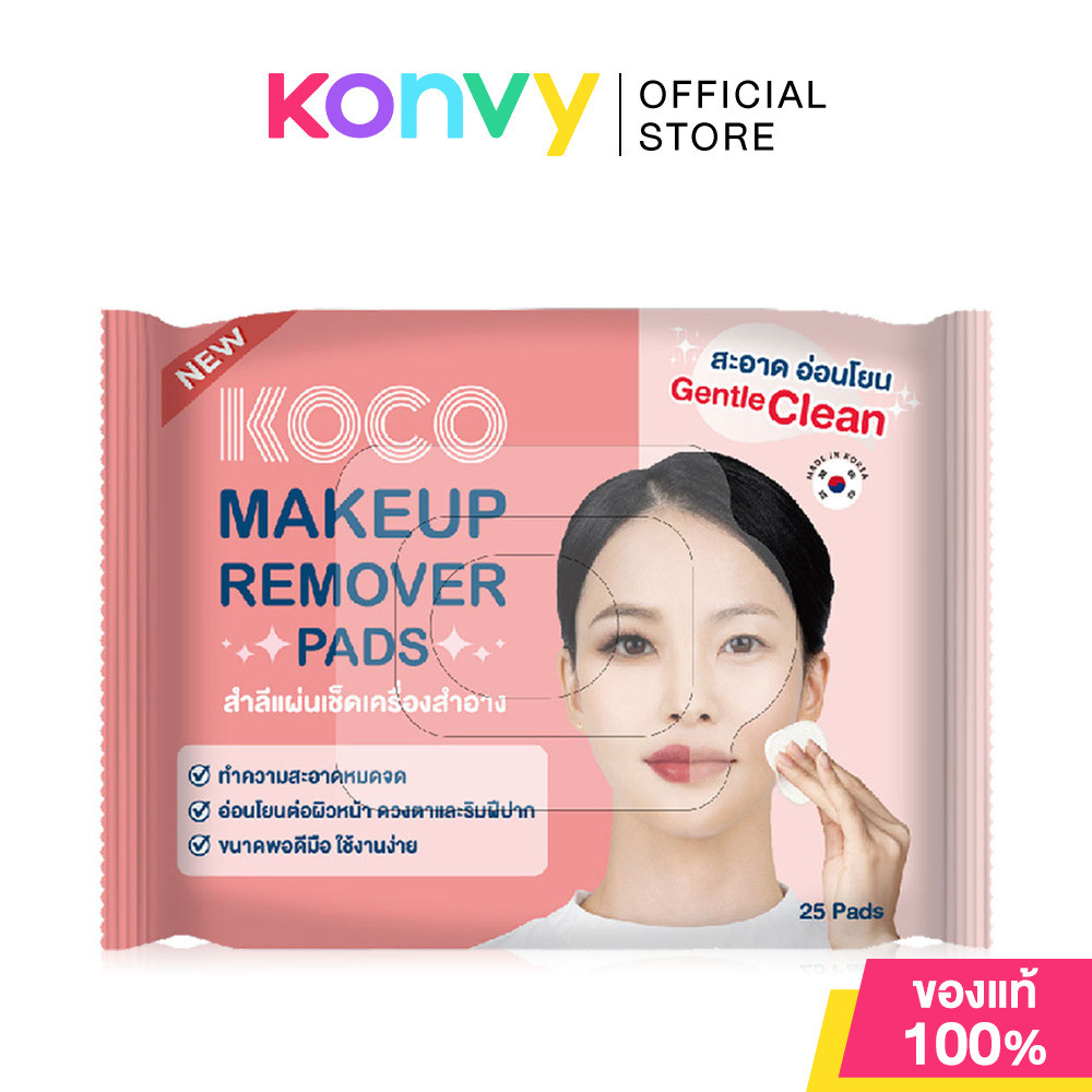 KOCO Gentle Eye Lip Makeup Remover 25 Pads โคโค แผ่นเช็ดเครื่องสำอาง.
