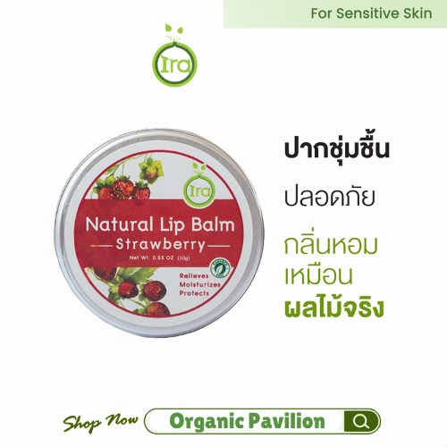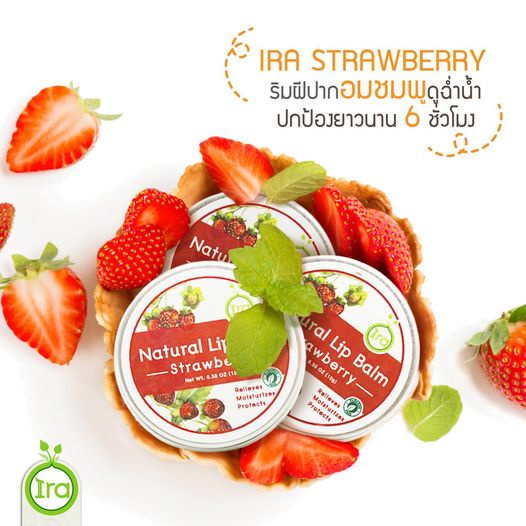 Ira Natural Lip Balm ไอรา ลิปบาล์ม กลิ่นสตอเบอร์รี่ Strawberry Flavored (10g)