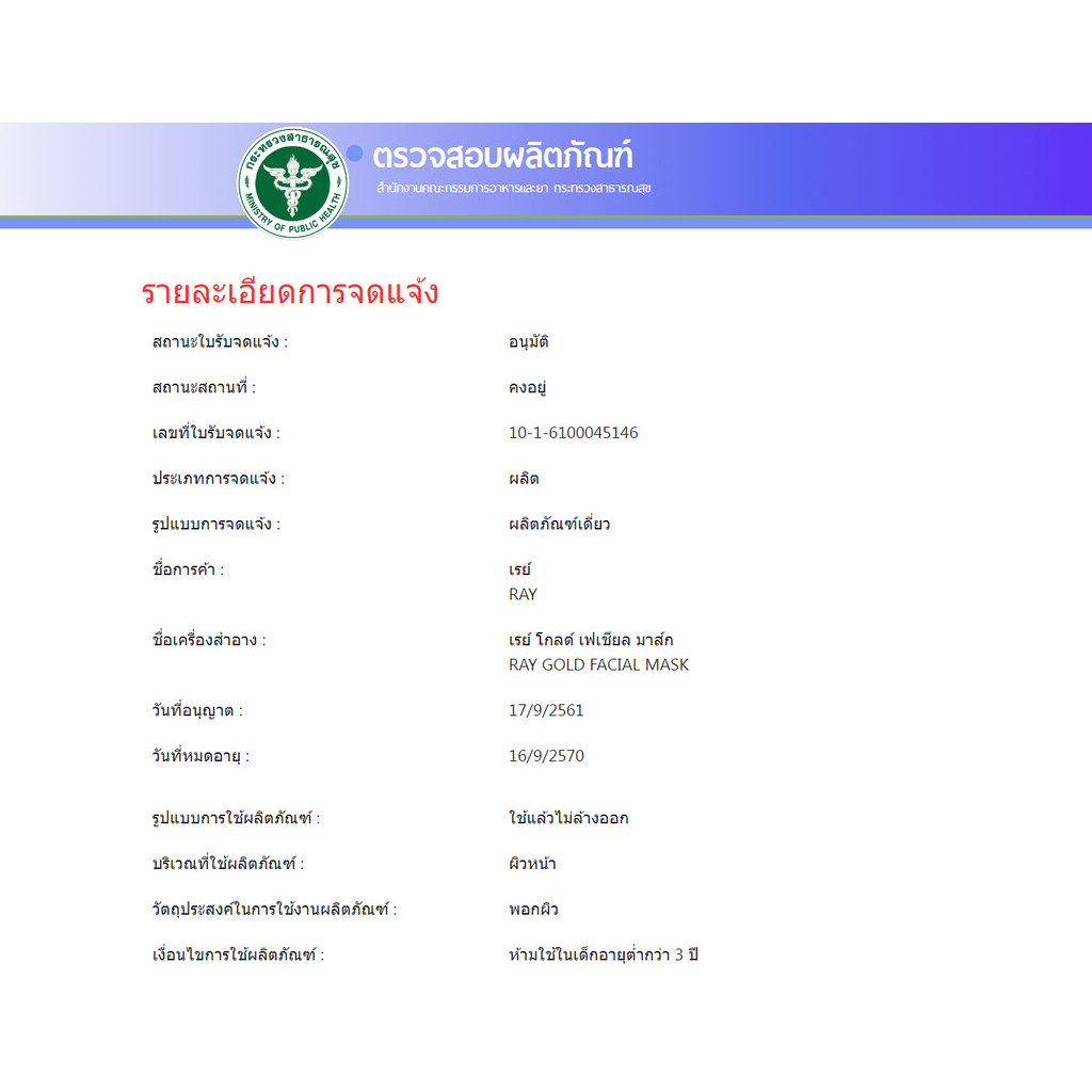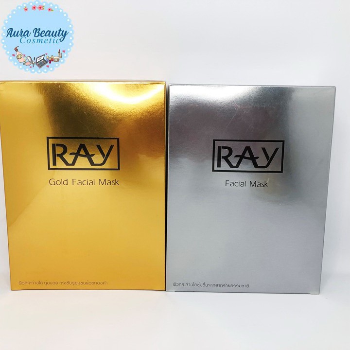 Ray Facial Mask 30g x 10 ซอง แผ่นมาสก์หน้า สูตร สีเงิน ทอง