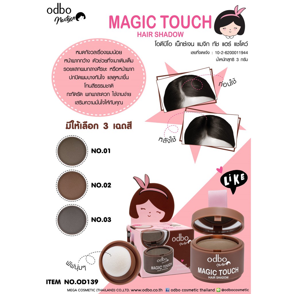 [♥️แท้] Odbo NextGen Magic Touch Hair Shadow 3g โอดีบีโอ เน็กซ์เจน แมจิก ทัช แฮร์ แชโดว์ ปิดผมบาง ปิดเหม่ง OD1-107