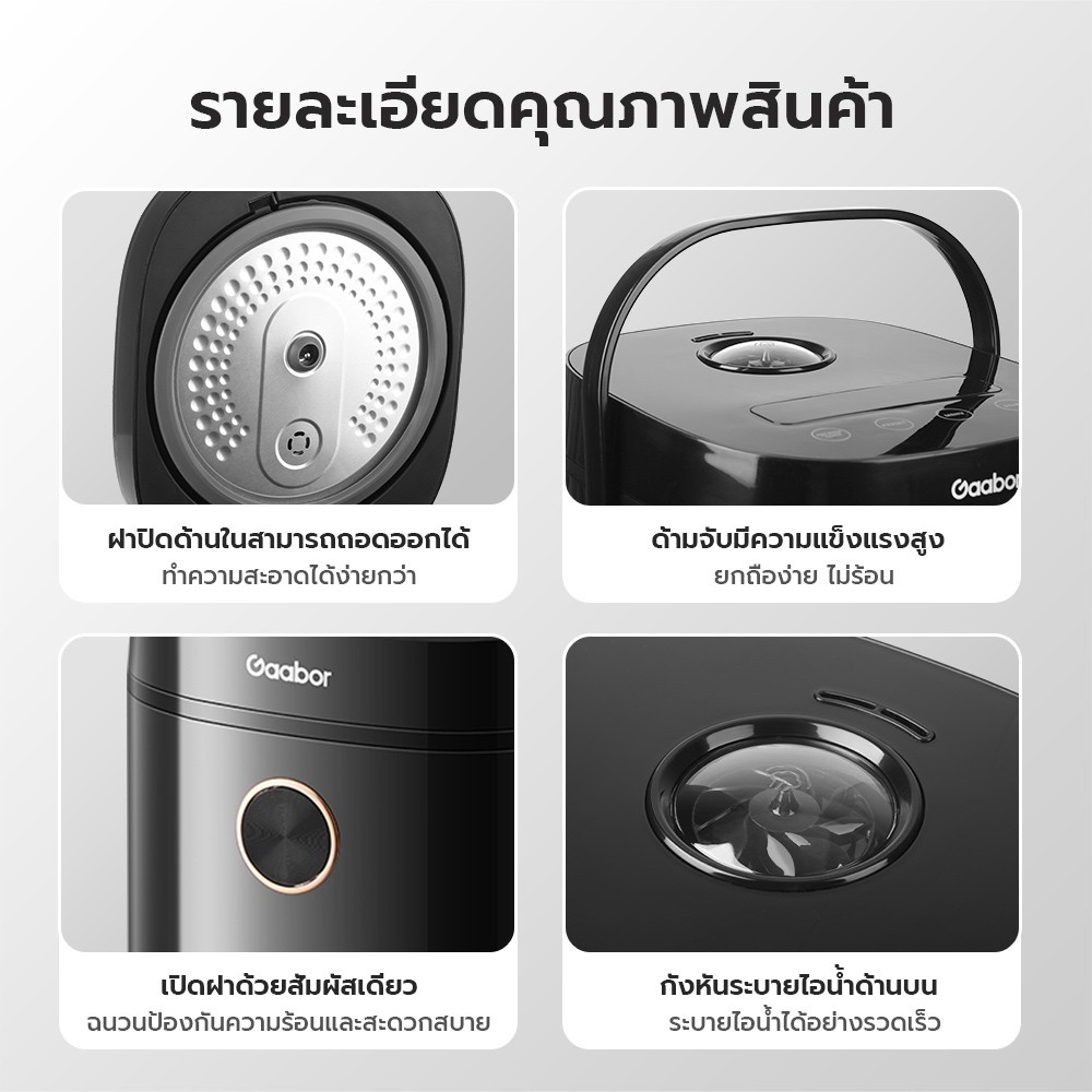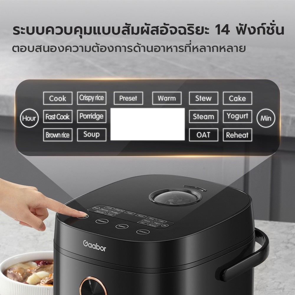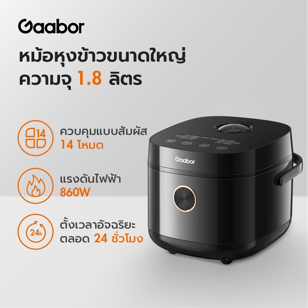 Gaabor Rice Cooker หม้อหุงข้าว 1.8 ลิตร หน้าจอสัมผัส พร้อมฟังก์ชั่นทำอาหารอัจฉริยะ รุ่น RC18T-BK01A