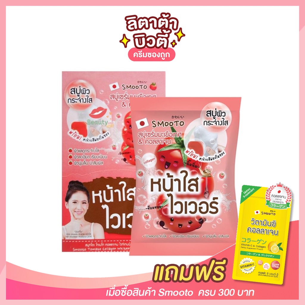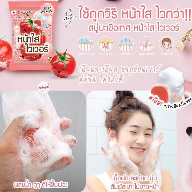 [กล่อง x4ก้อน] สมูทโตะ โทเมโท คอลลาเจน ไวท์เทนนิ่งเซรั่มโซป Smooto Tomato Collagen Whitening Serum Soap